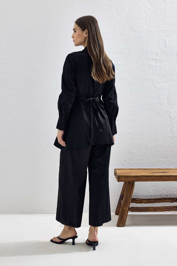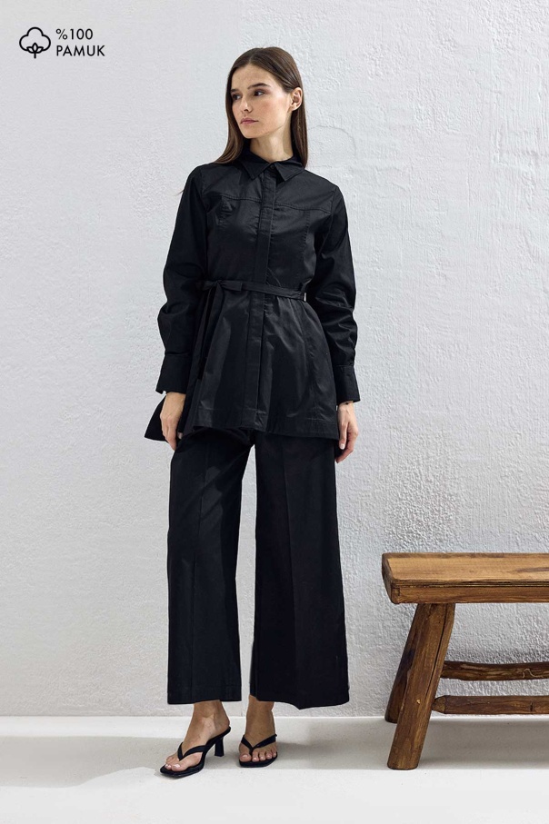 Cosmo Bel Detaylı Pamuklu Siyah Pantolon Takım