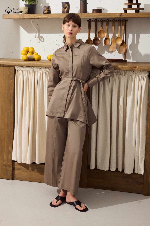 Cosmo Bel Detaylı Pamuklu Vizon Pantolon Takım