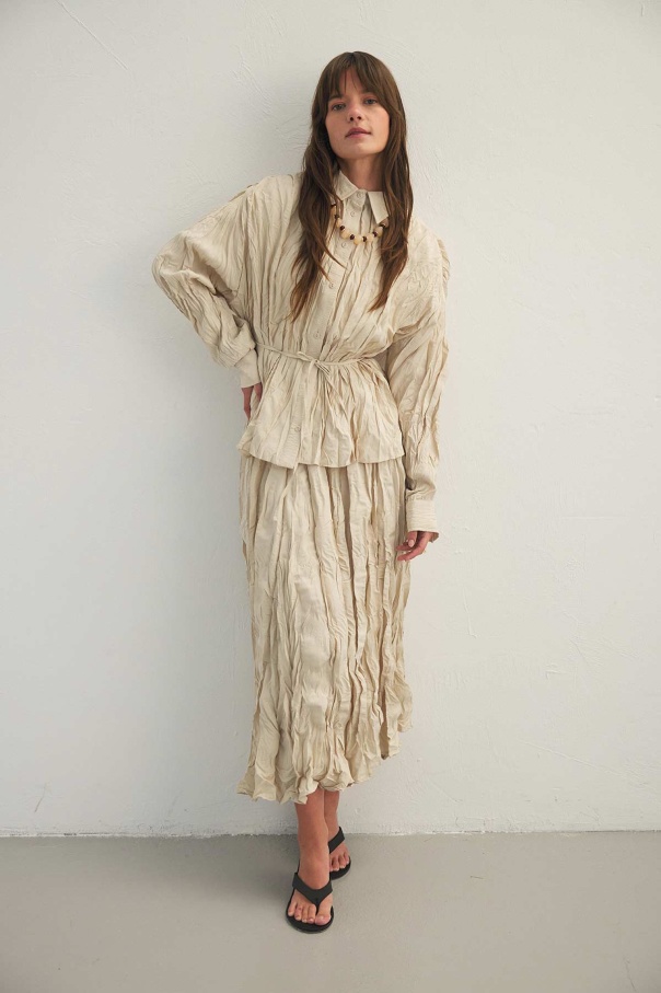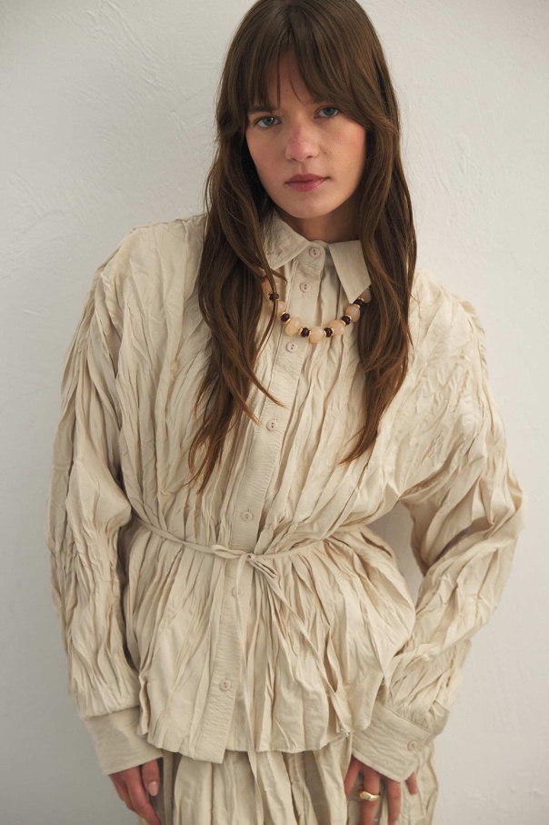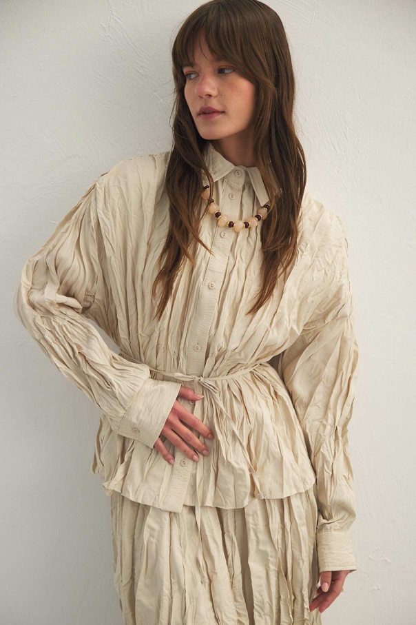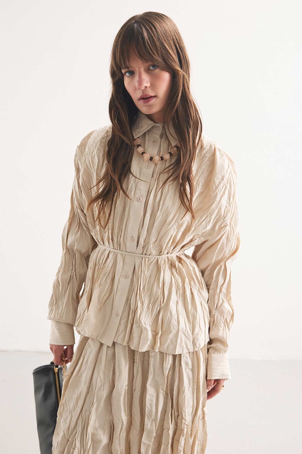 Crush Dokulu Bej Gömlek