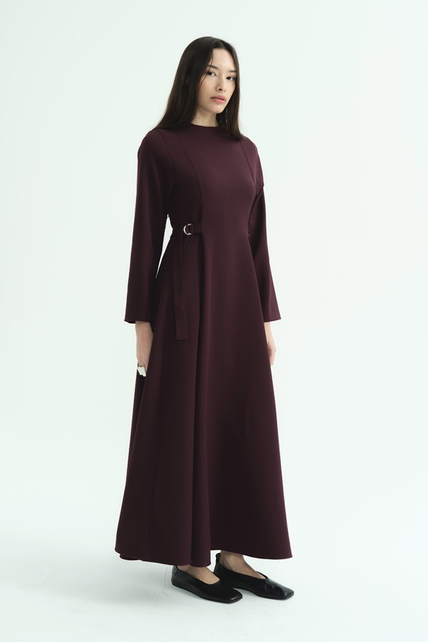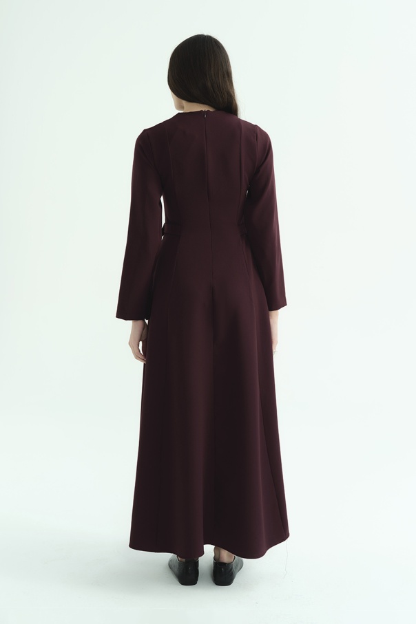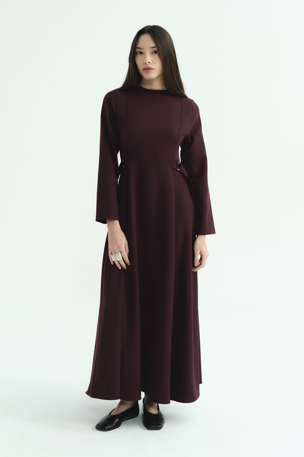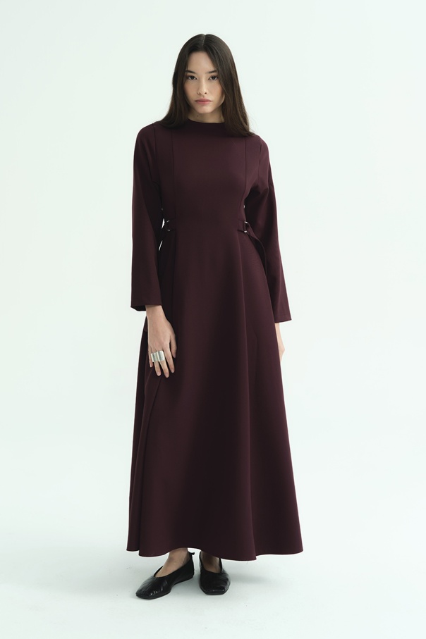 D Toka Detaylı Uzun Burganya Elbise