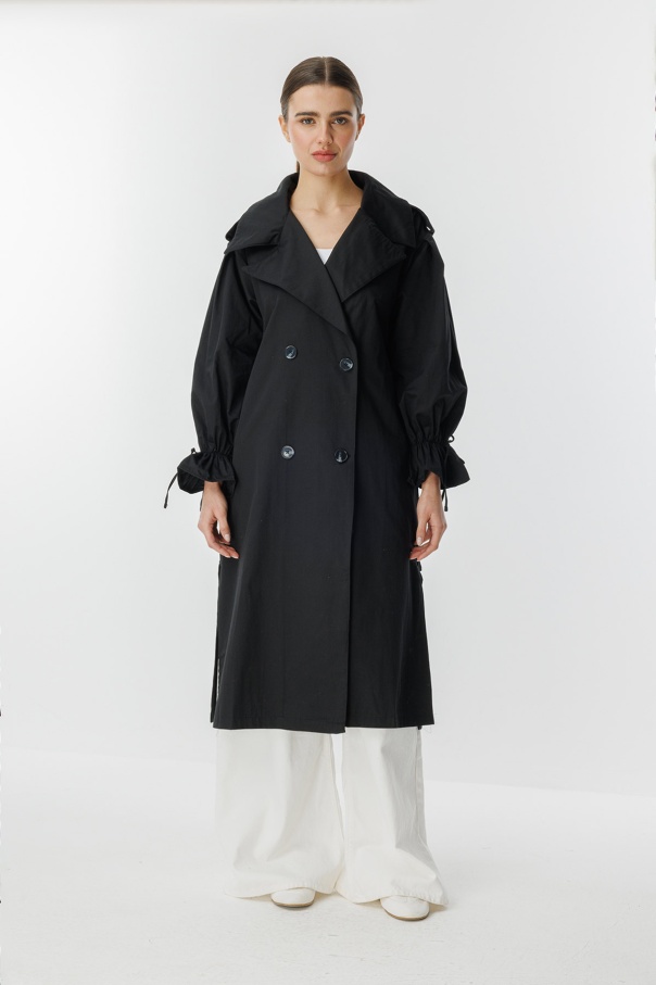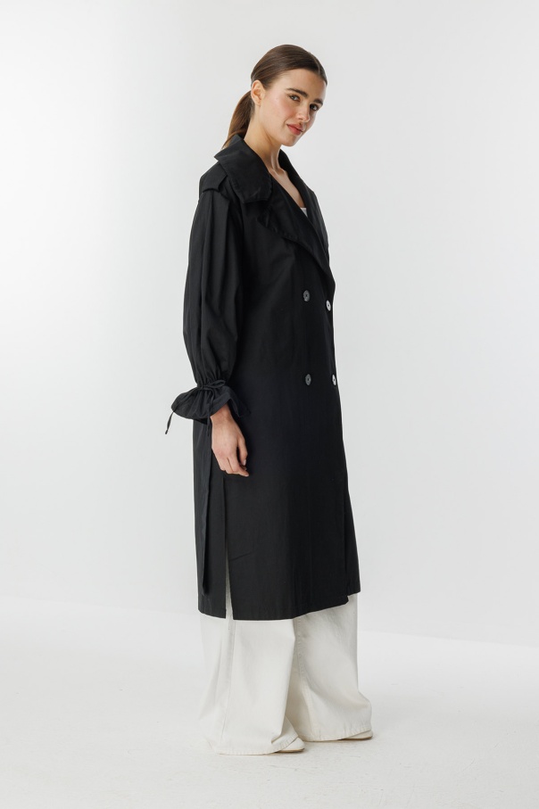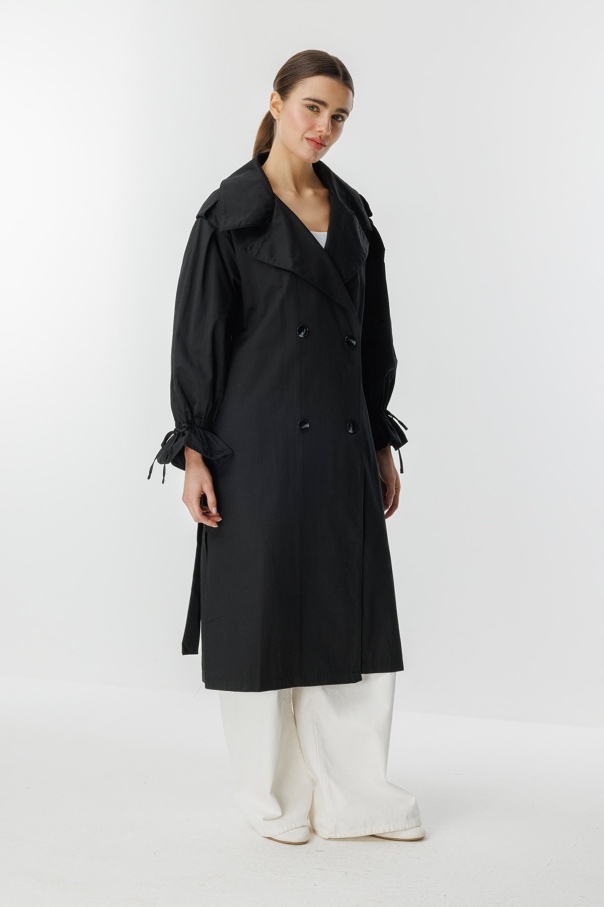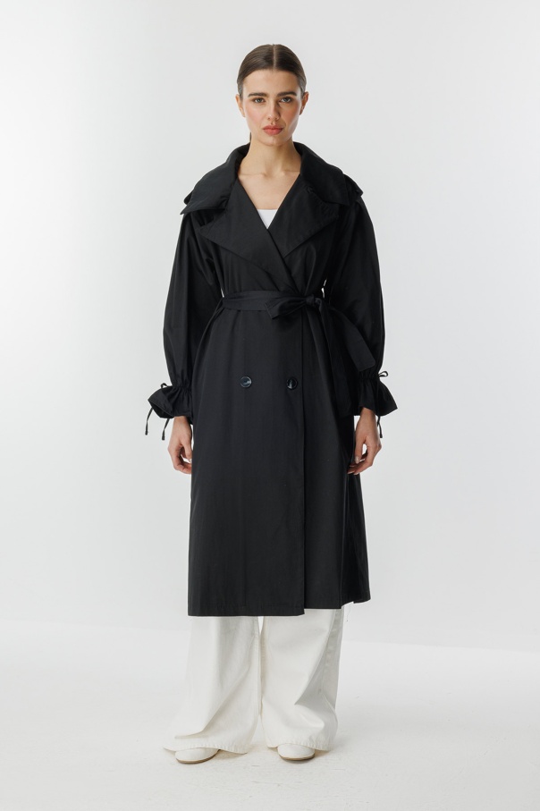 Daisy Kolları Bağlama Detaylı Siyah Trençkot
