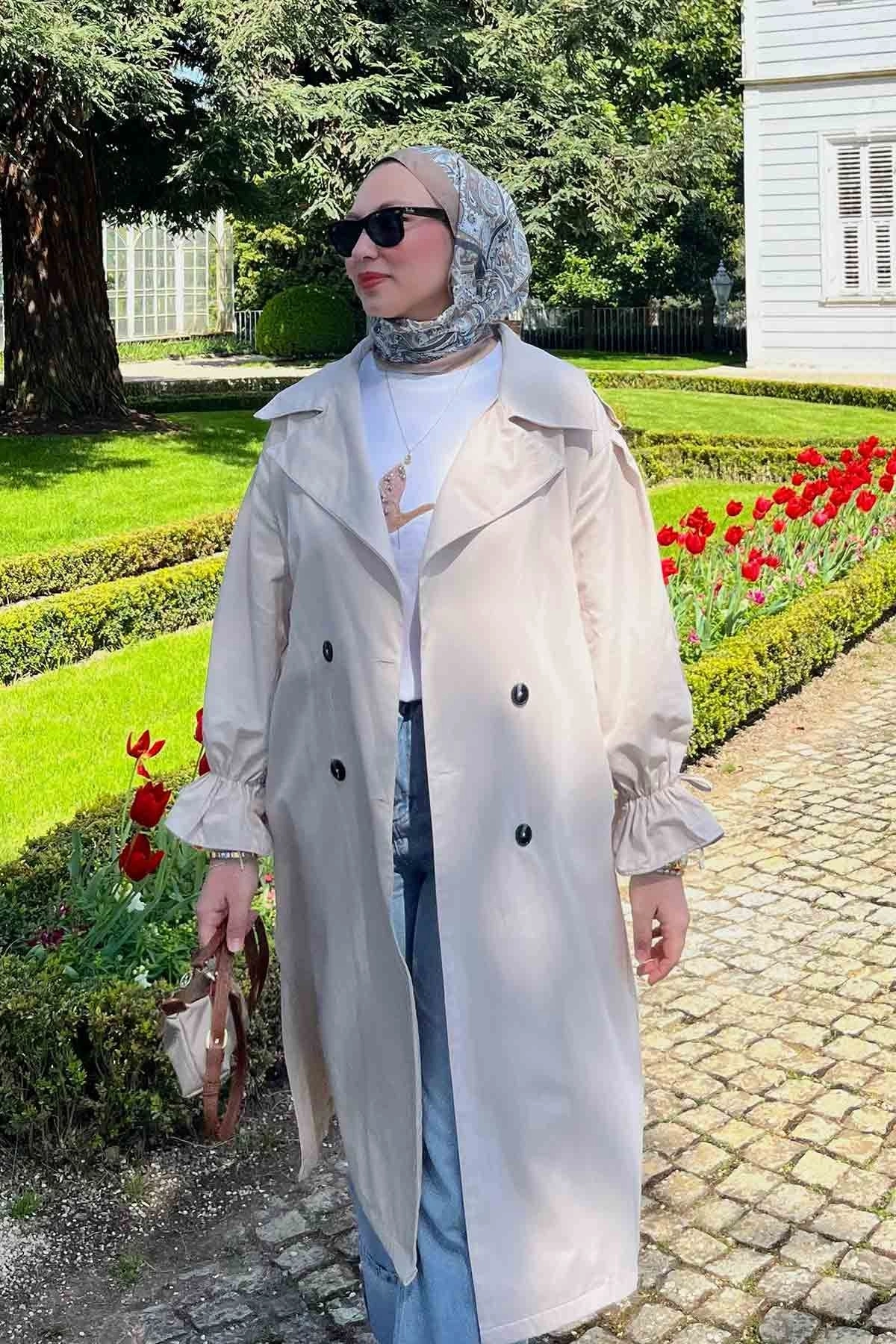 Daisy Kolları Bağlama Detaylı Taş Trençkot