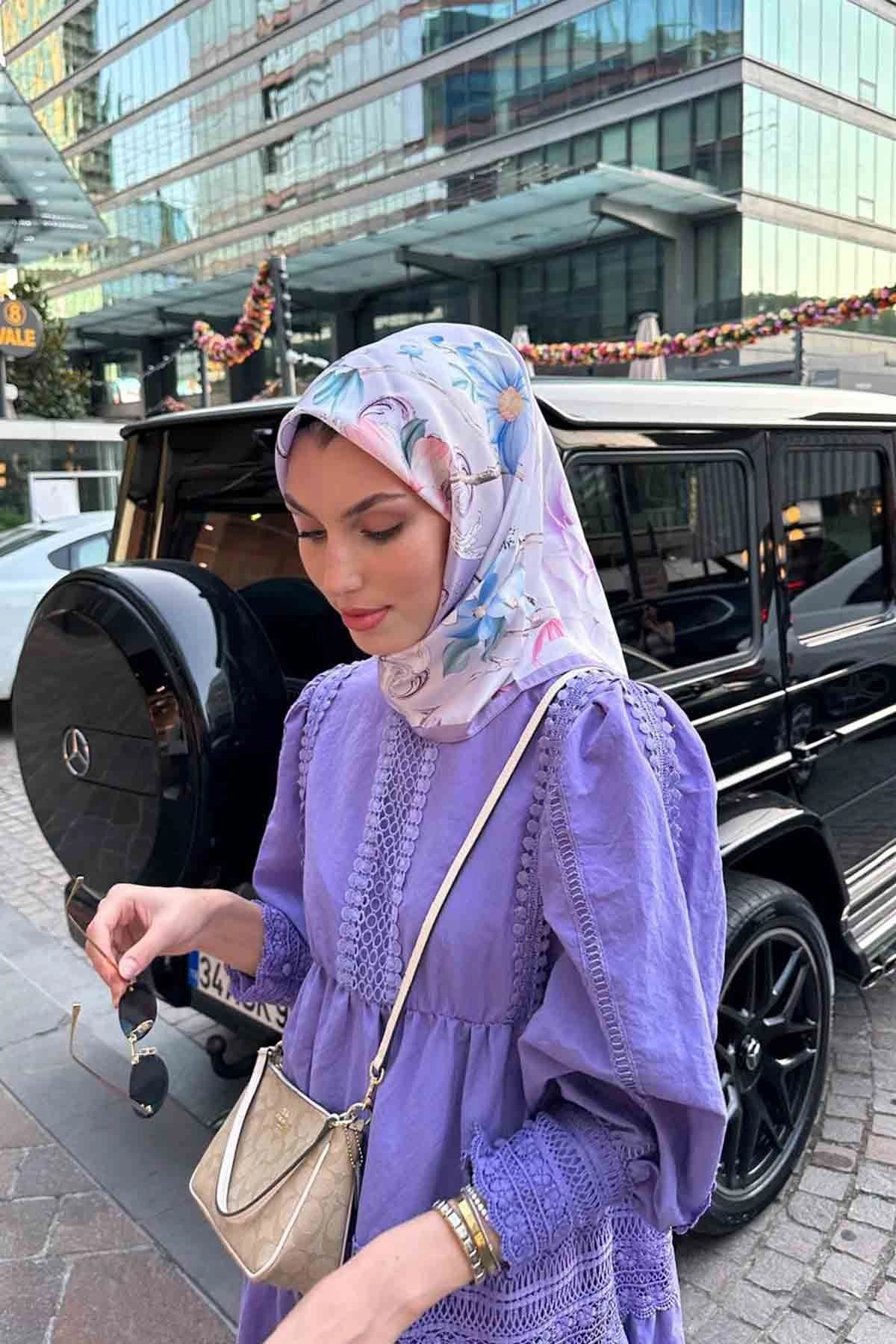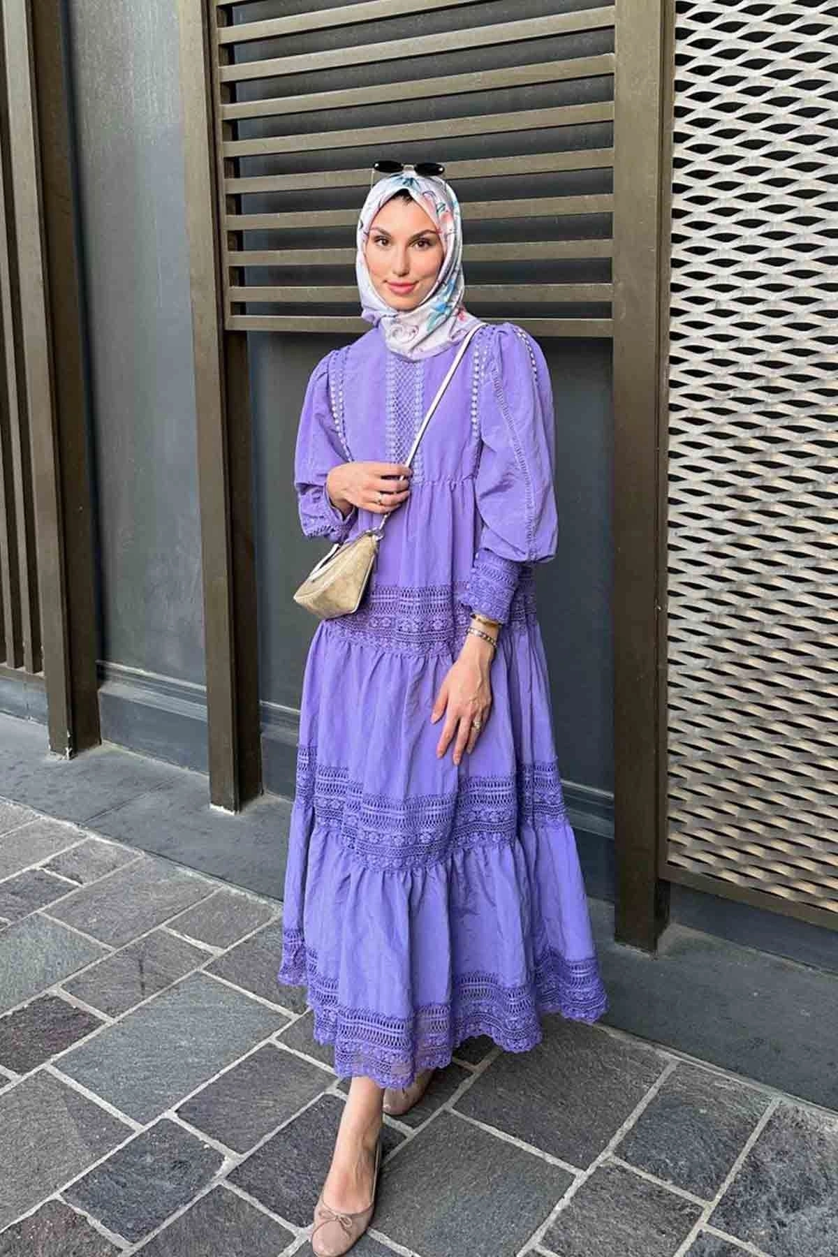 Dantel Detaylı Lila Elbise