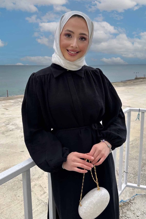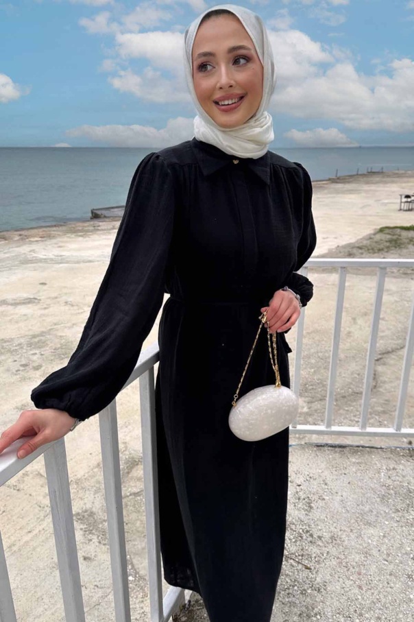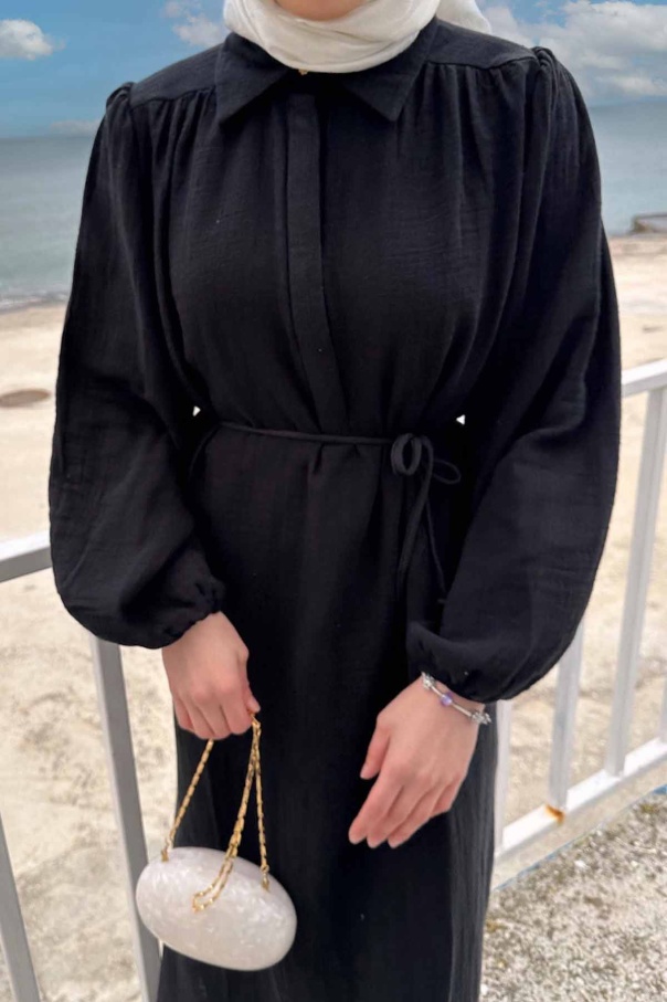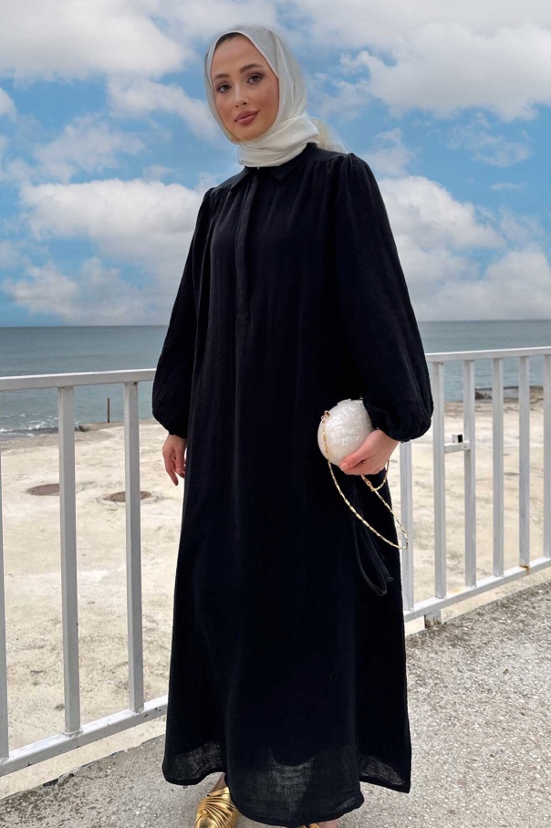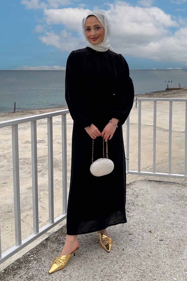 Daphne Balon Kol Elbise - Siyah
