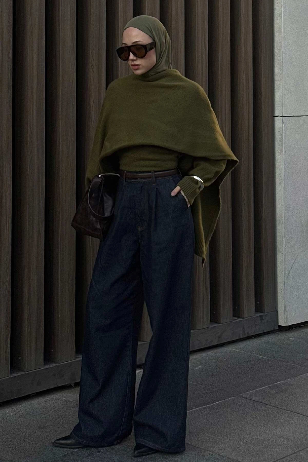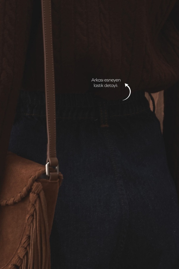 Denim Bol Kesim Yüksek Bel Lacivert Pantolon