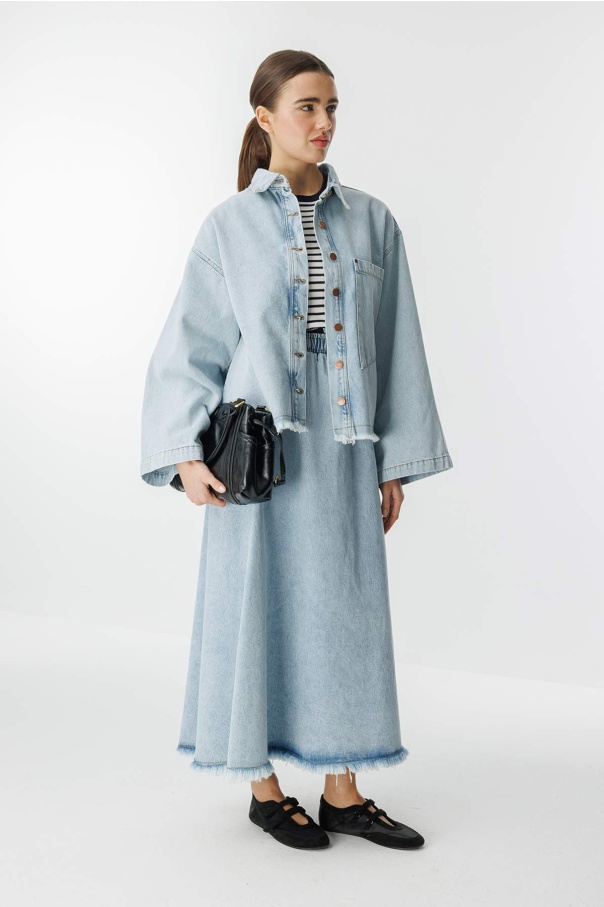 Denim Buz Mavi Etekli Takım