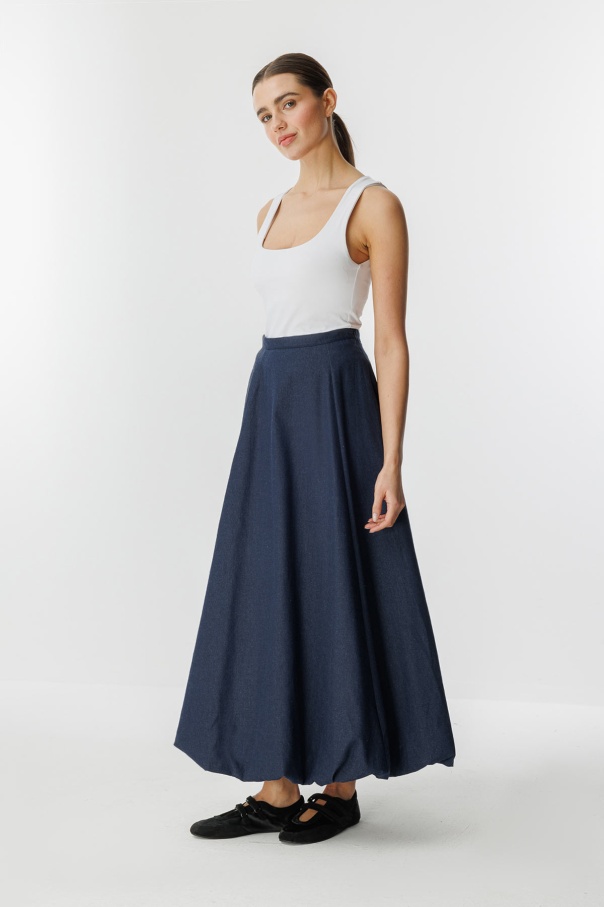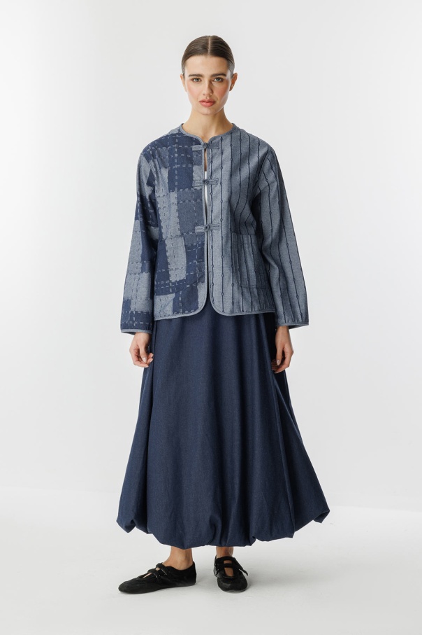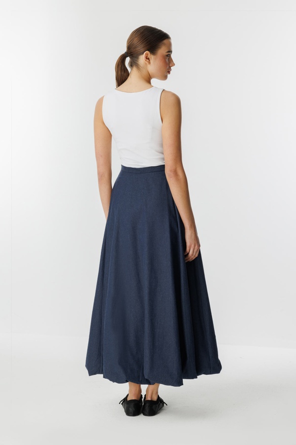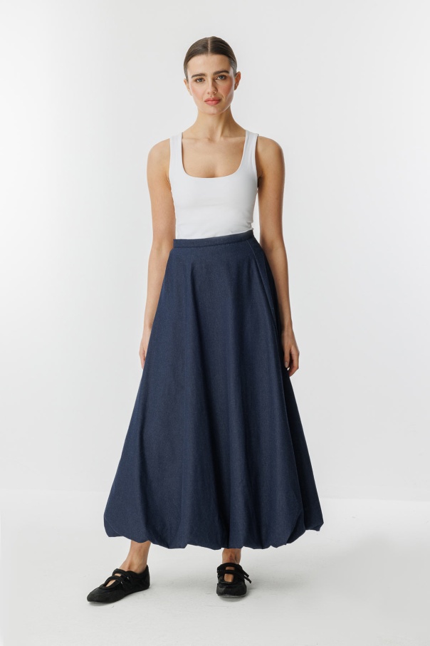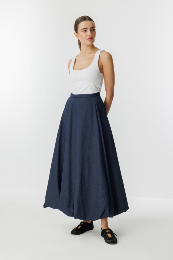 Denim Dokulu Balon Lacivert Etek