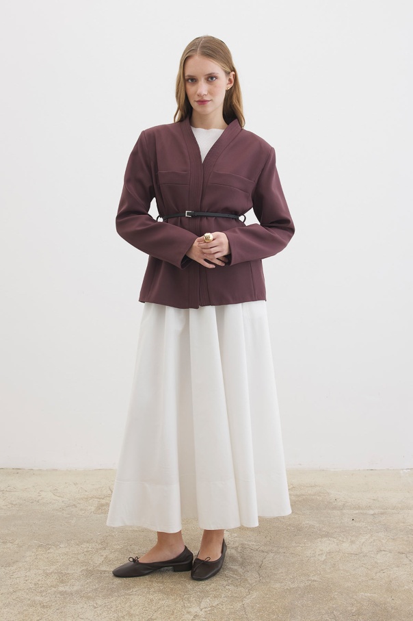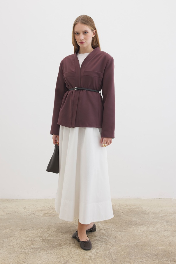 Deri Kemer Detaylı Çikolata Ceket