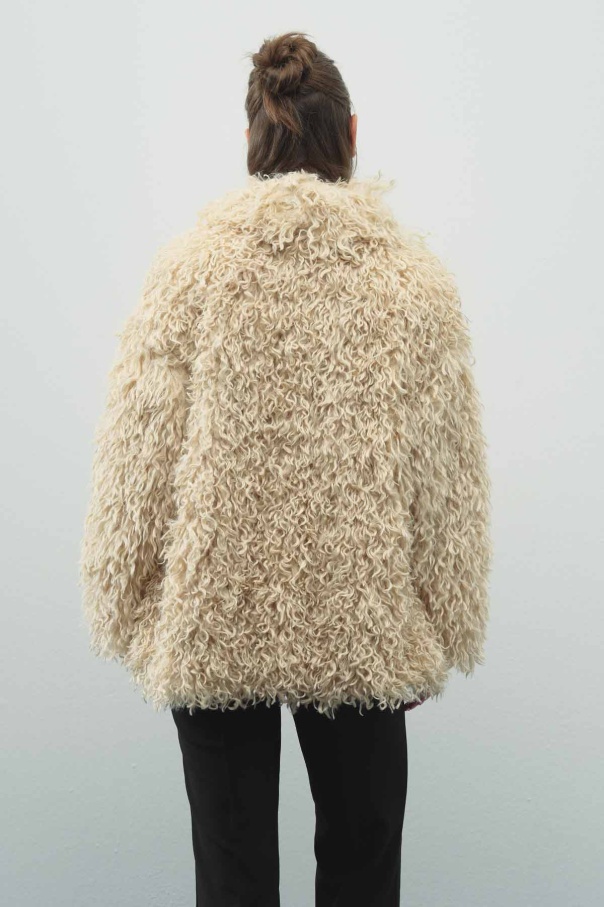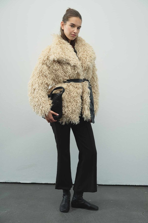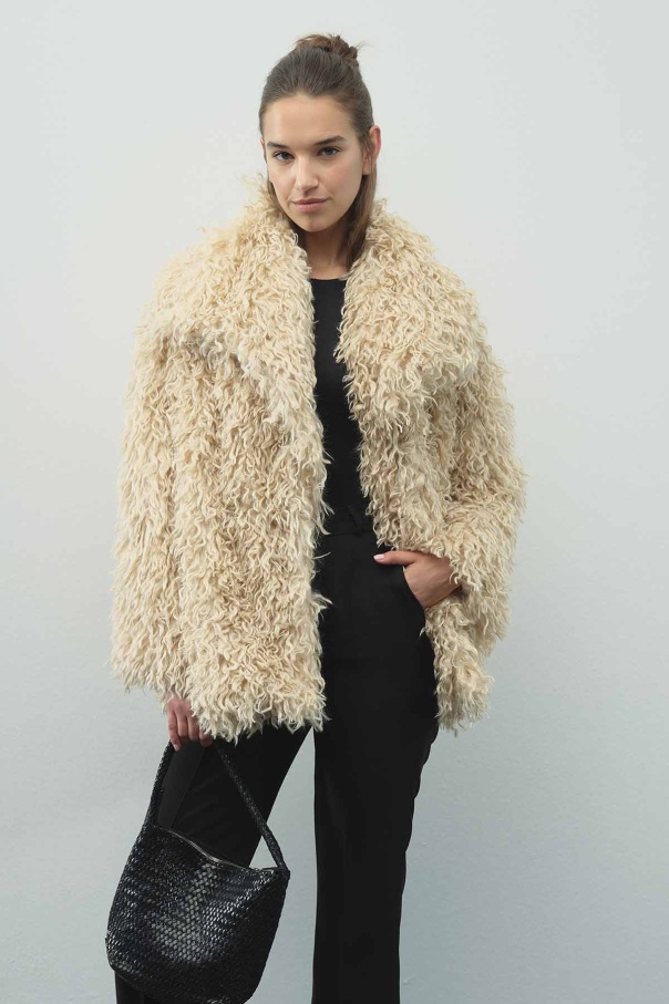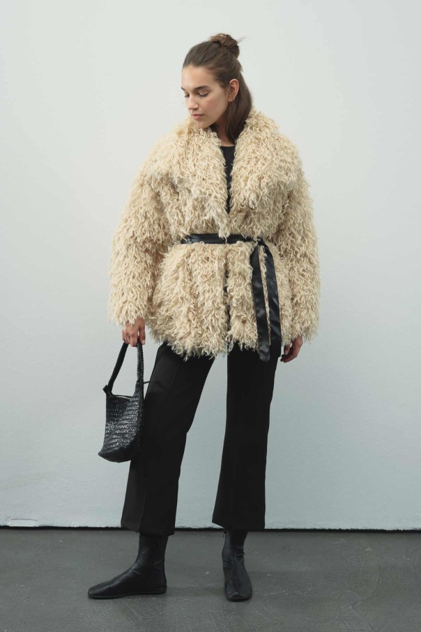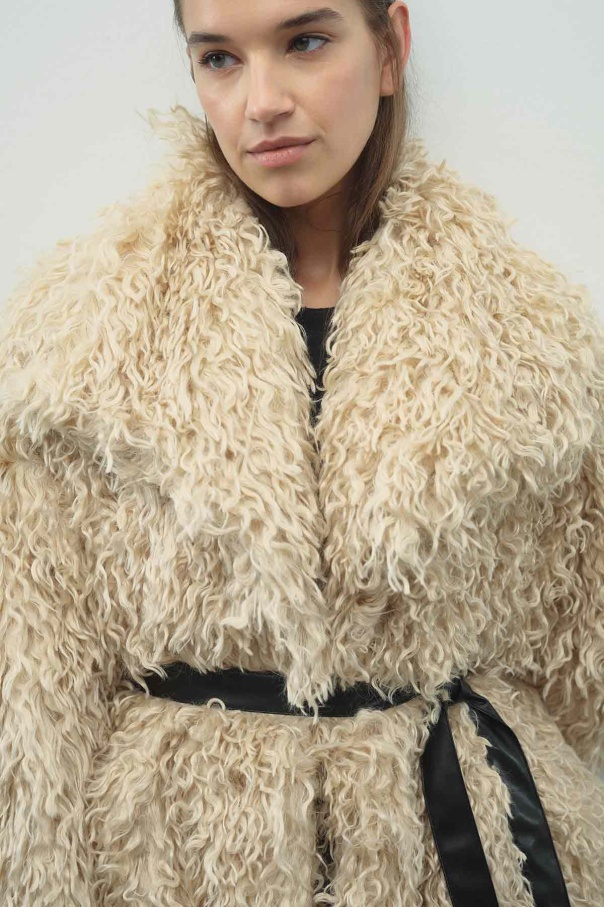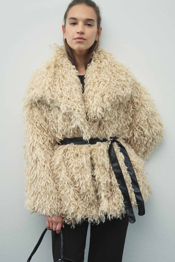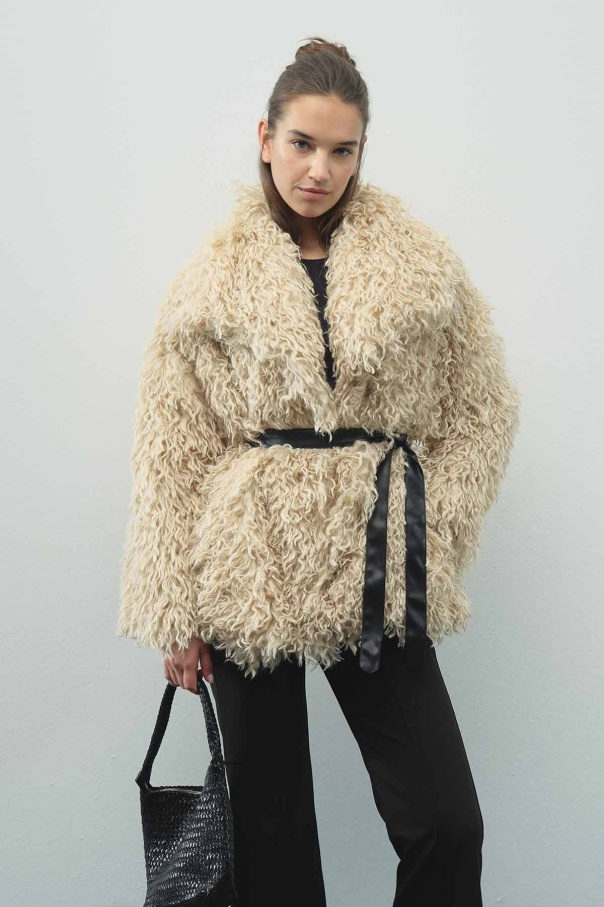 Deri Kemer Detaylı Suni Kürk Krem Ceket