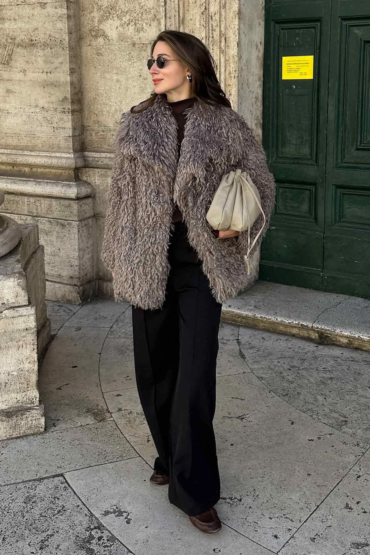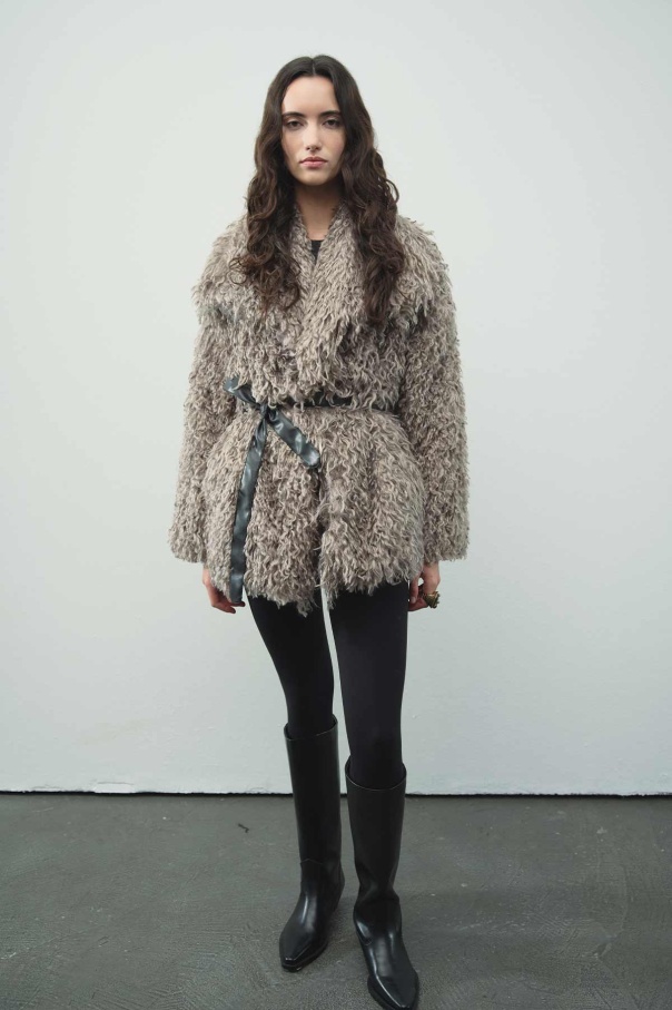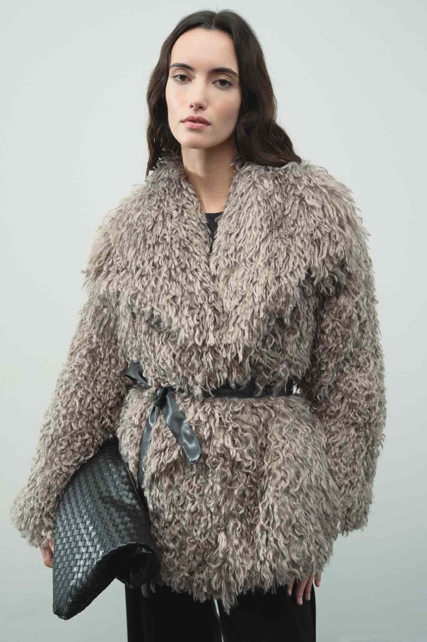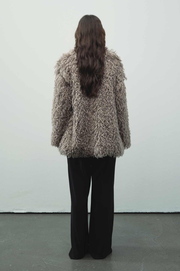 Deri Kemer Detaylı Suni Kürk Vizon Ceket