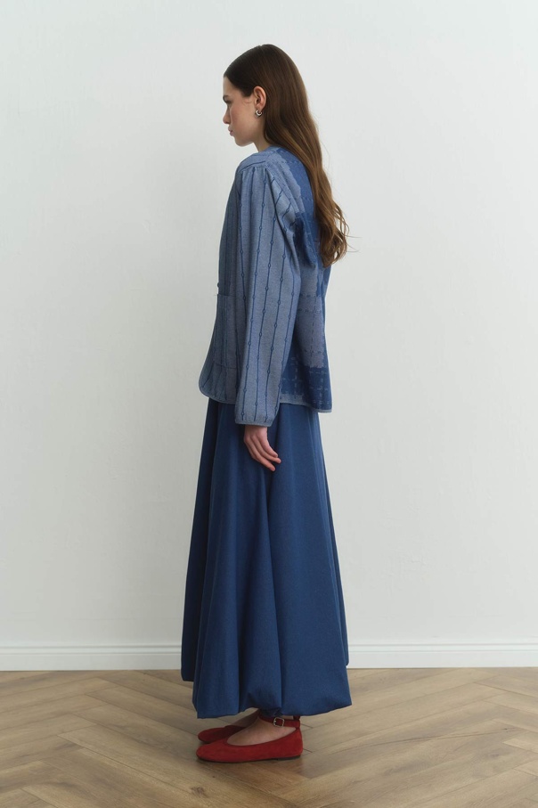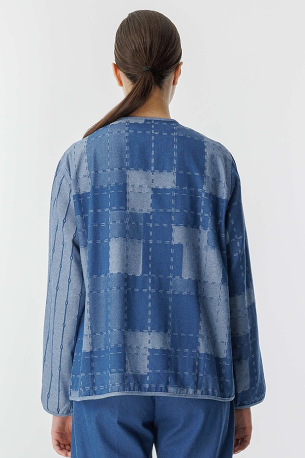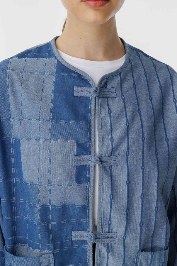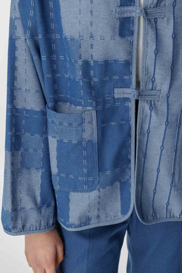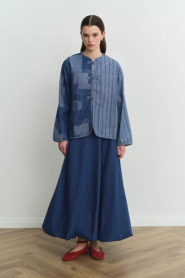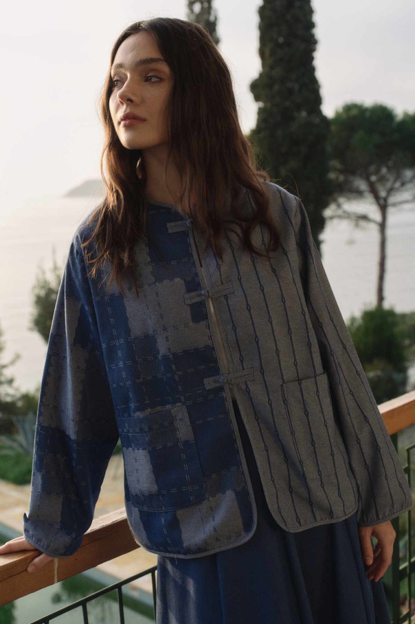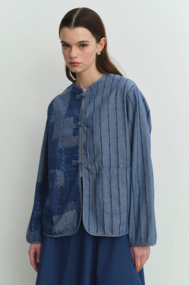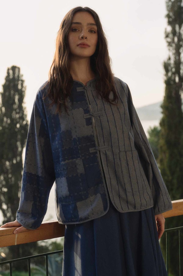 Desenli Denim Dokulu Mavi Ceket