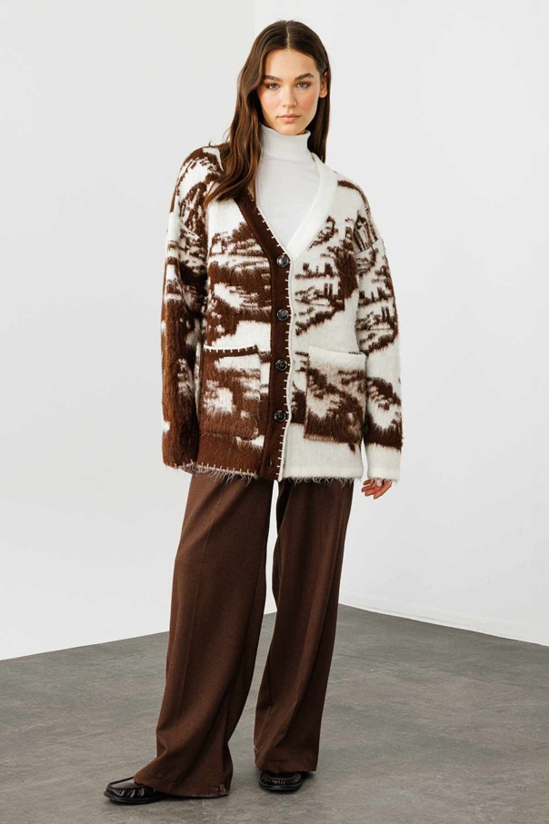 Desenli Kahve Hırka