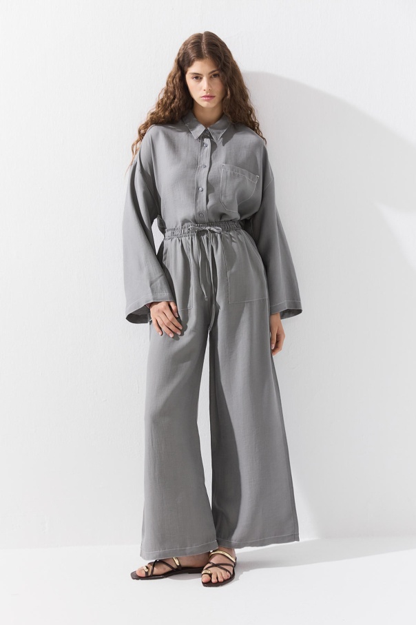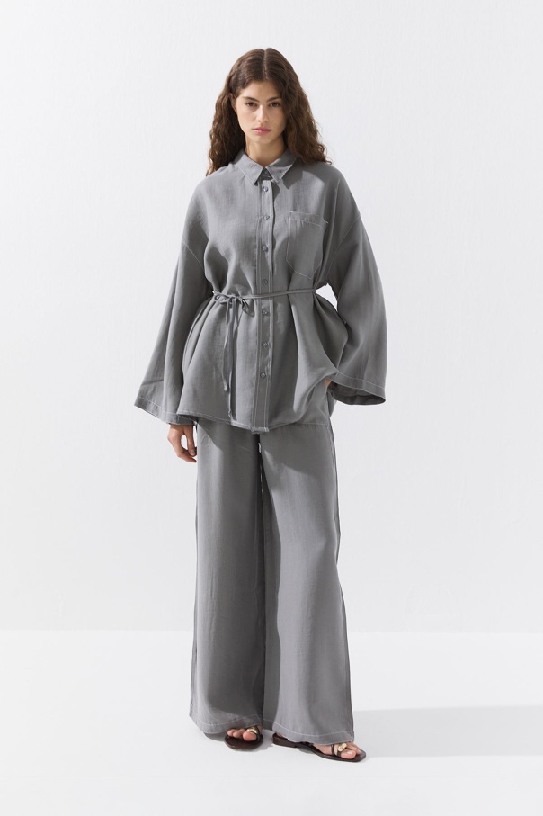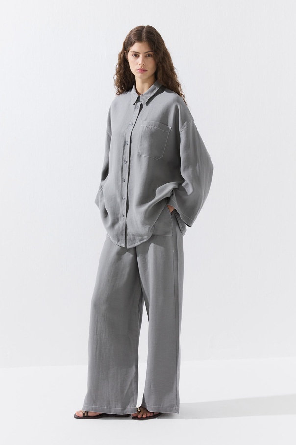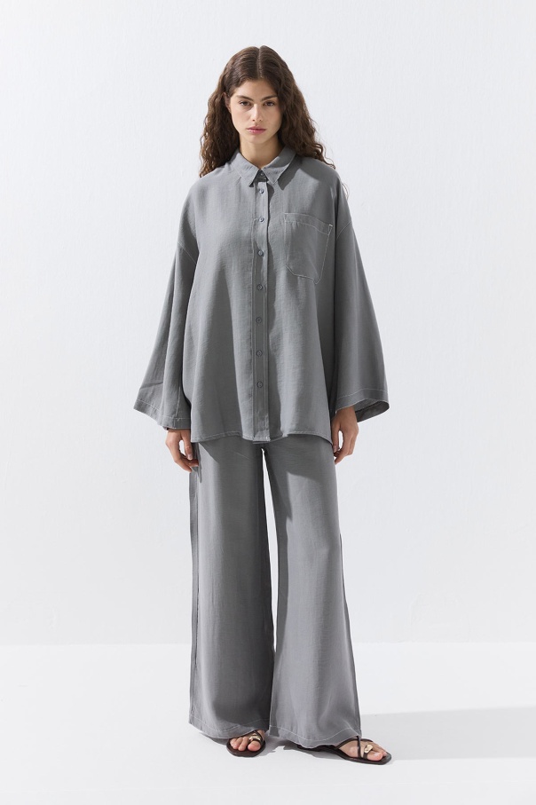 Dikiş Detaylı Rahat Açık Antrasit Pantolon Takım