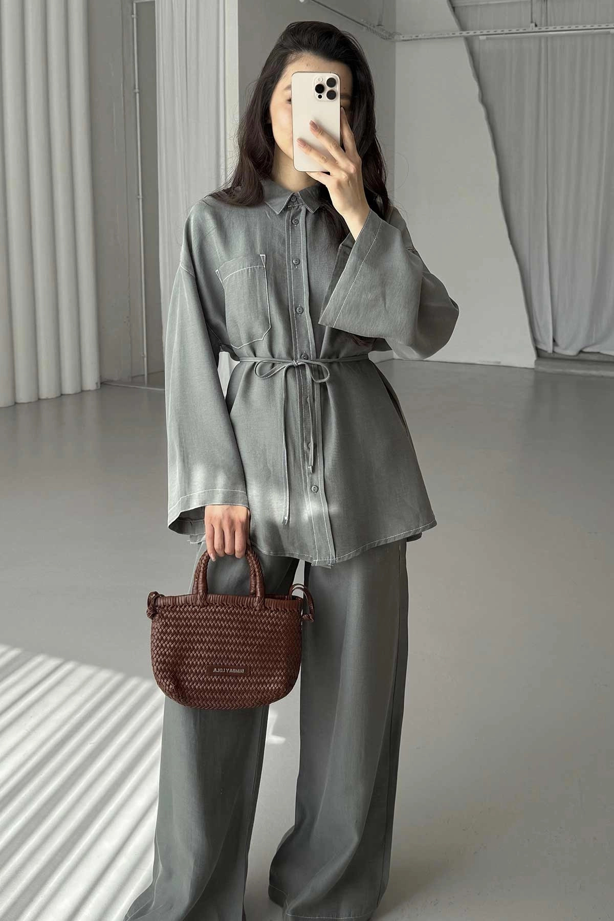 Dikiş Detaylı Rahat Gri Pantolon Takım