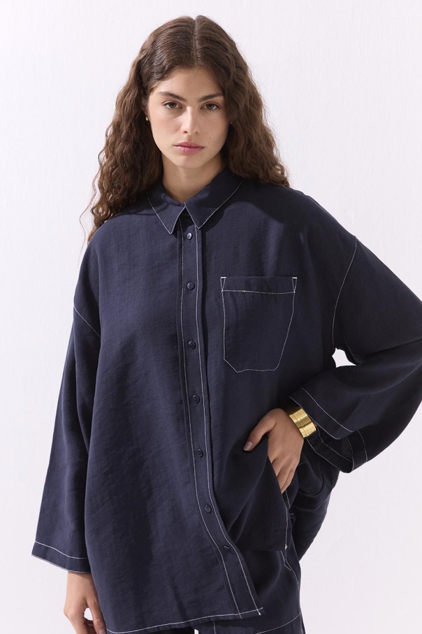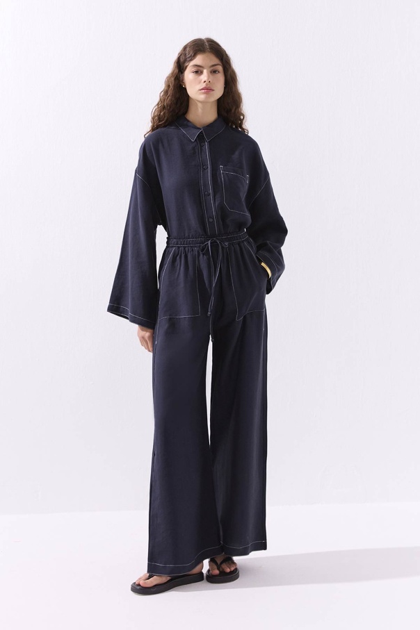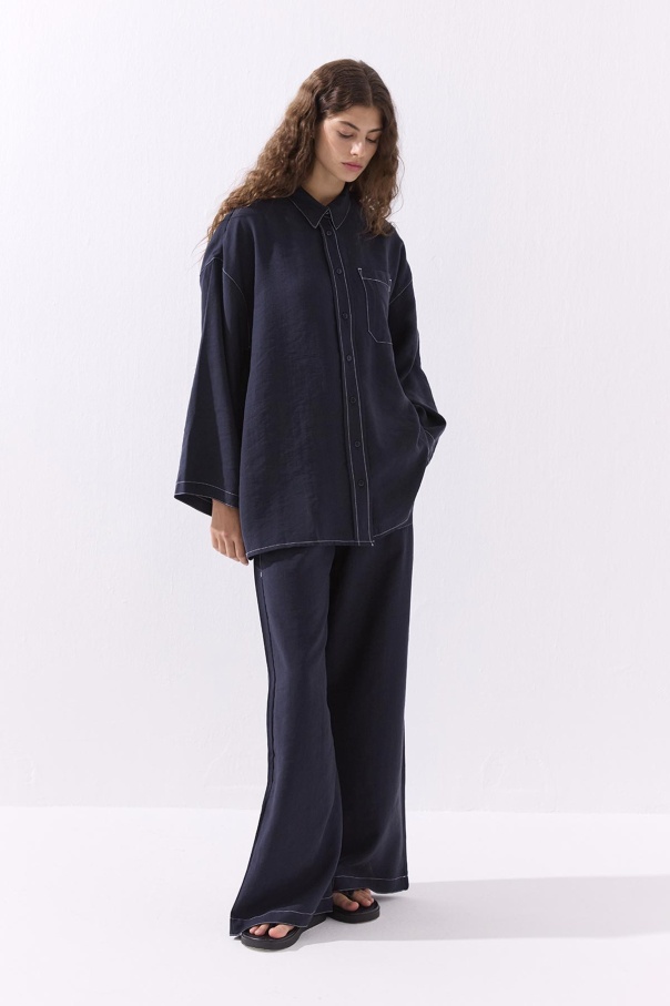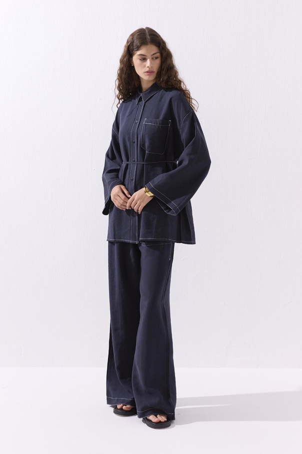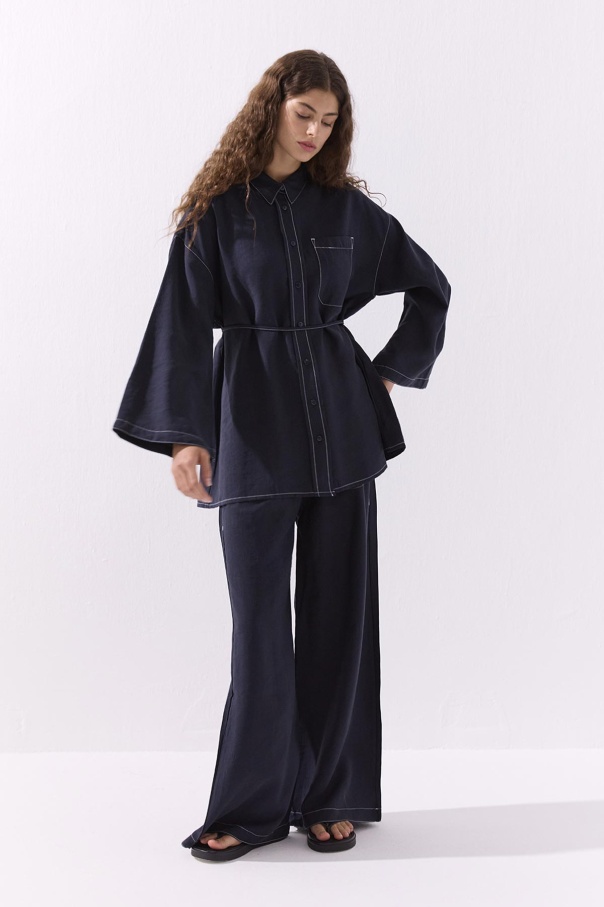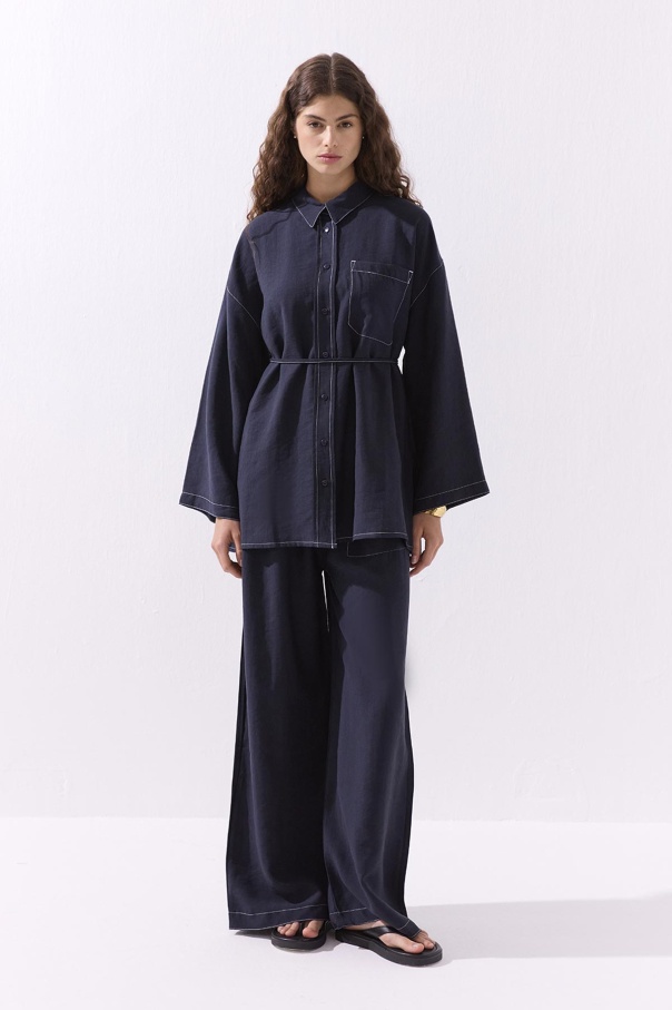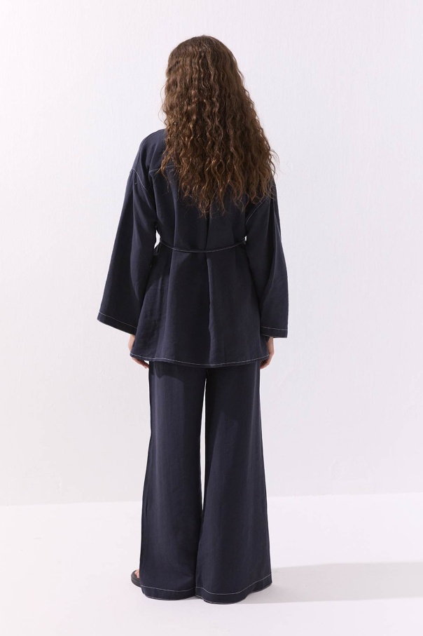Dikiş Detaylı Rahat Lacivert Pantolon Takım
