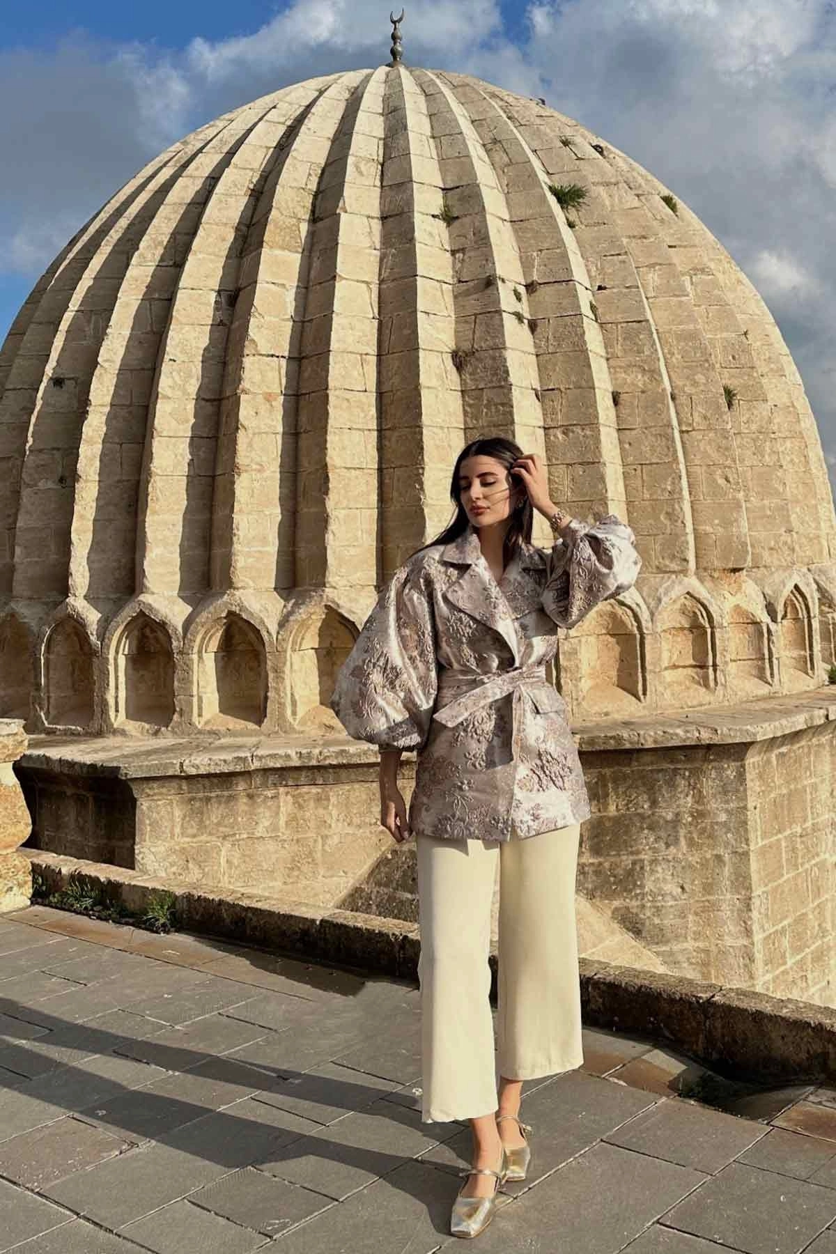 Model Ölçüleri: Boy: 1.72cm, Göğüs: 76cm, Bel: 62cm, Basen: 90cm