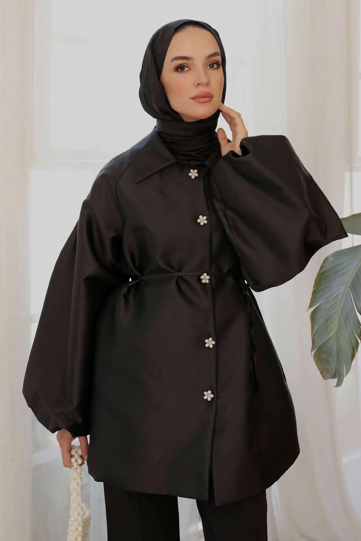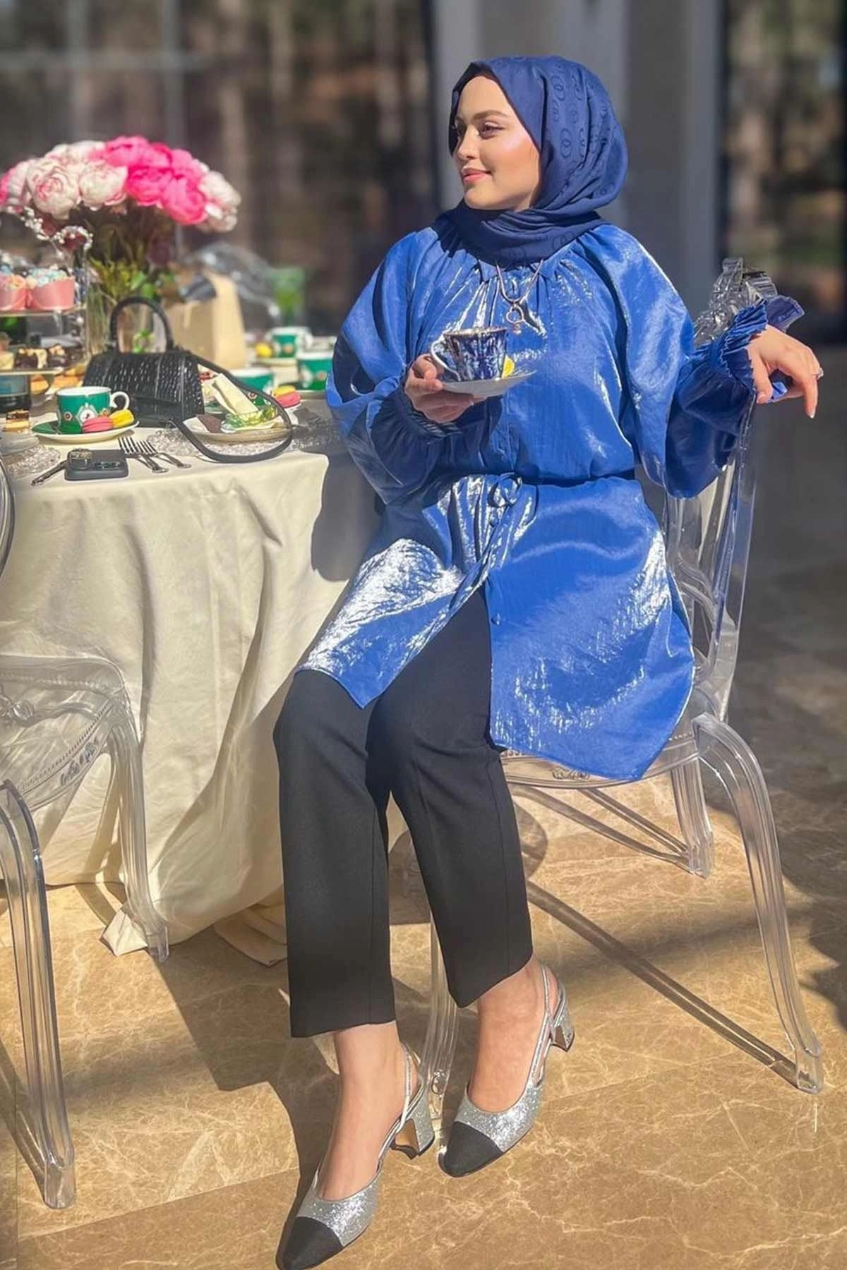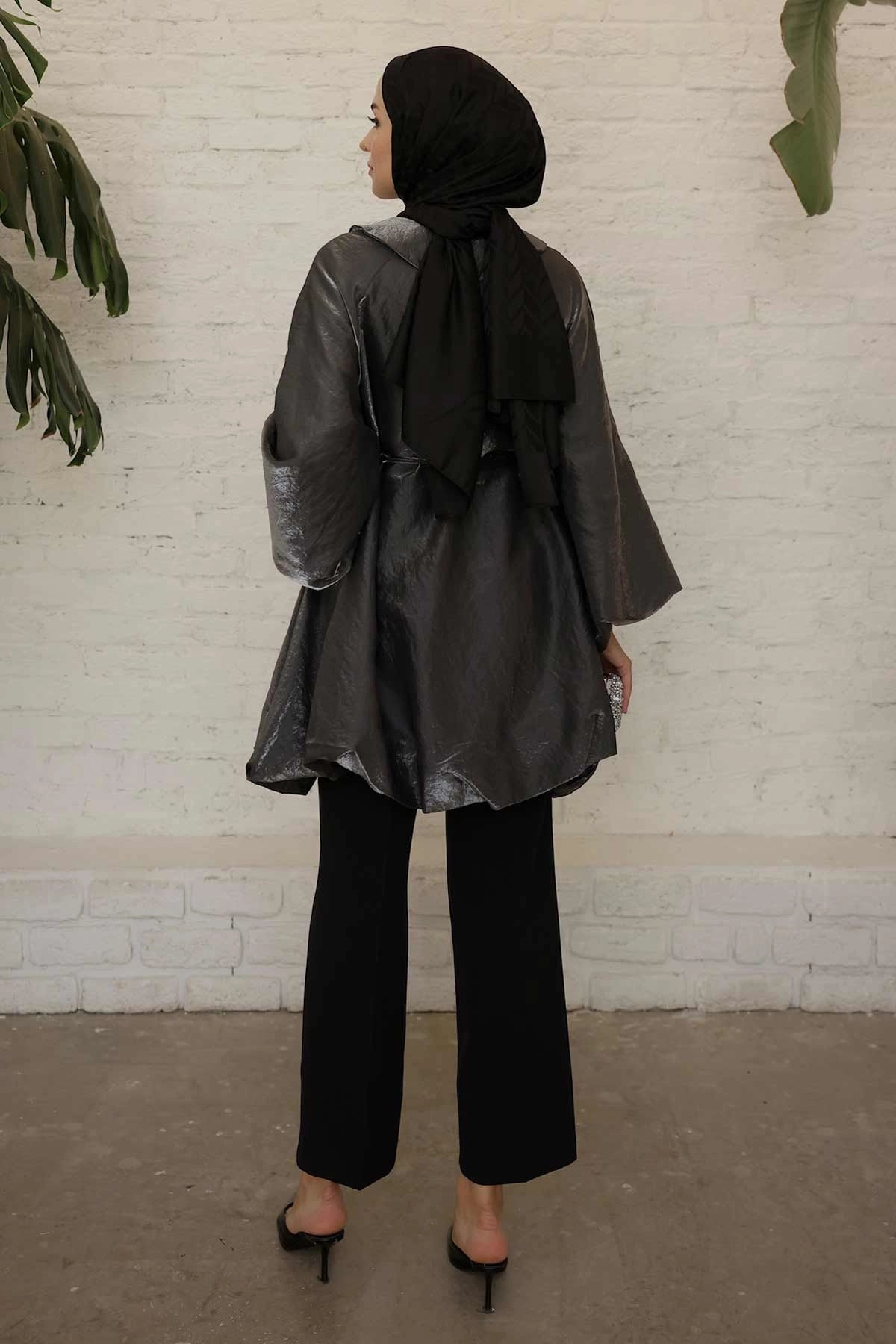 Model Ölçüleri: Boy: 1.74 cm, Göğüs: 81 cm, Bel: 63 cm, Basen: 86 cm
