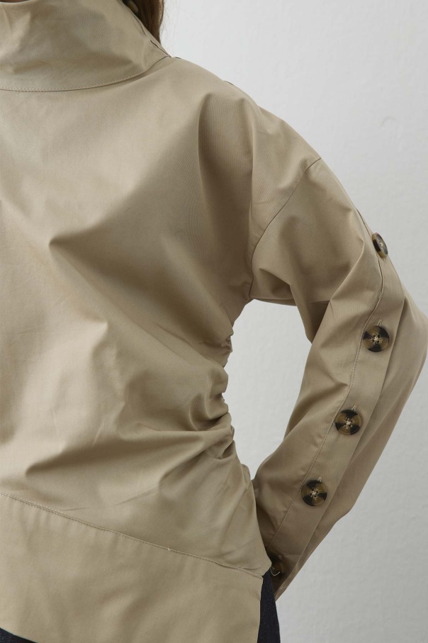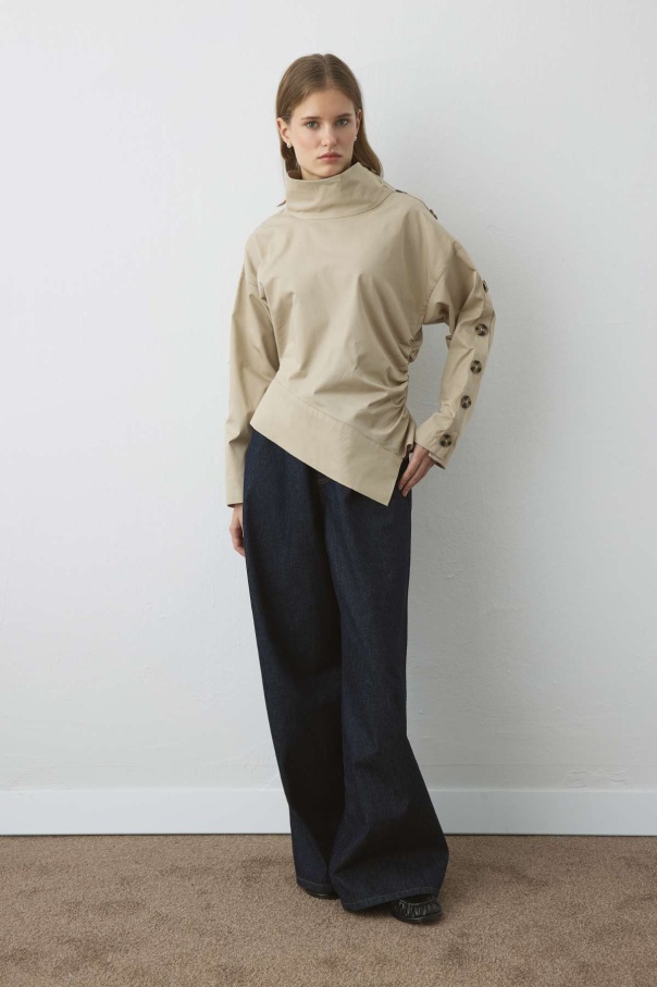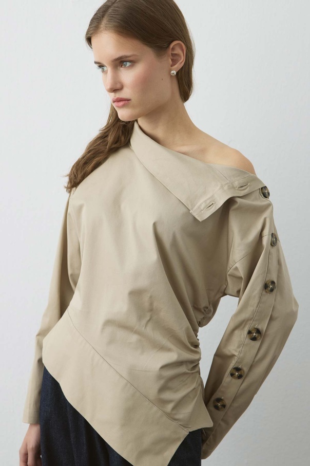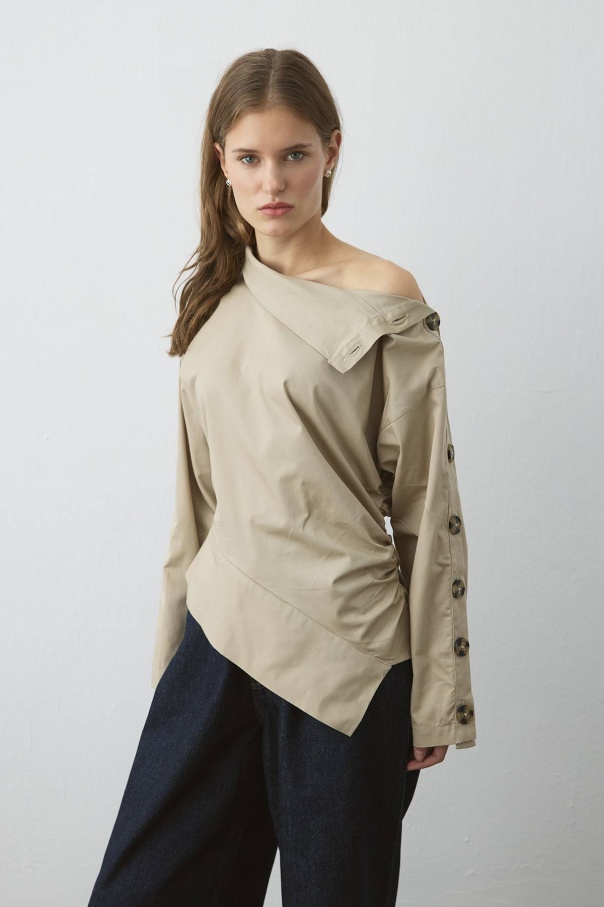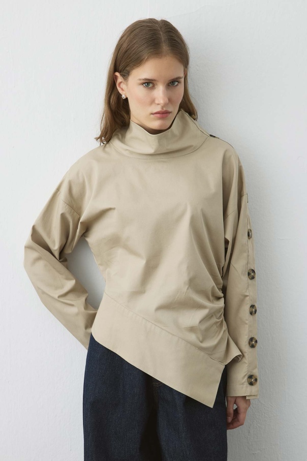 Düğme Detaylı Asimetrik Bej Bluz