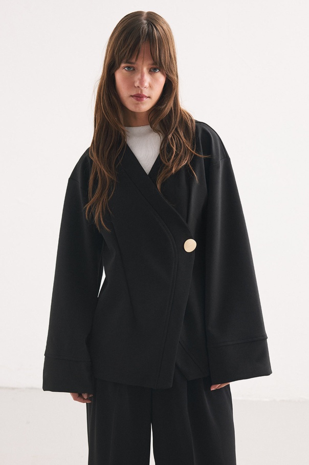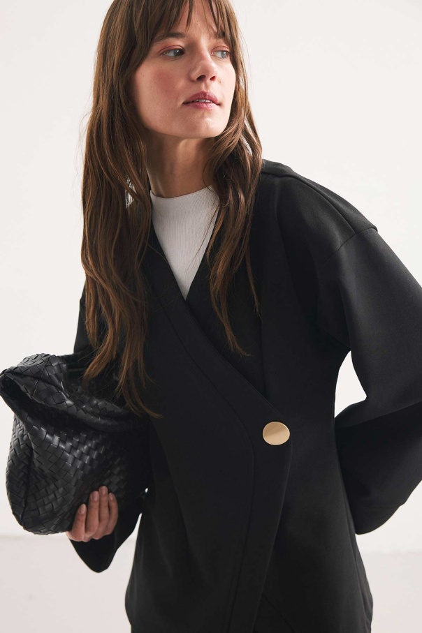Düğme Detaylı Siyah Kimono Bluz