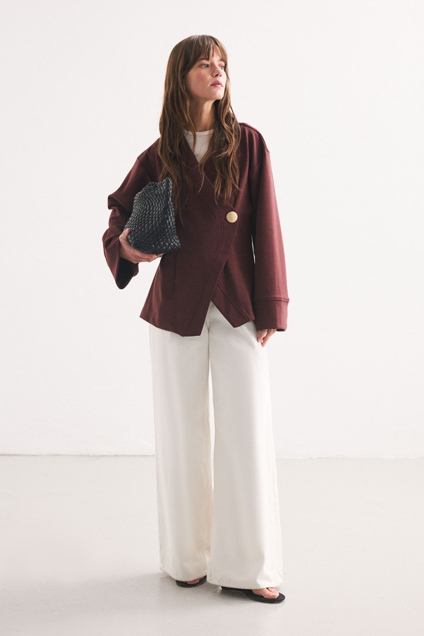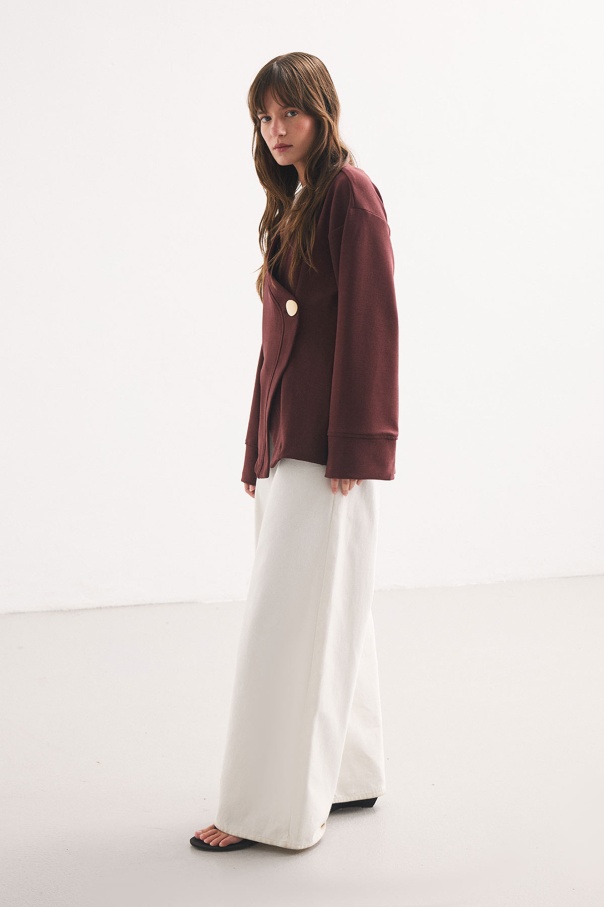 Düğme Detaylı Vişne Kimono Bluz