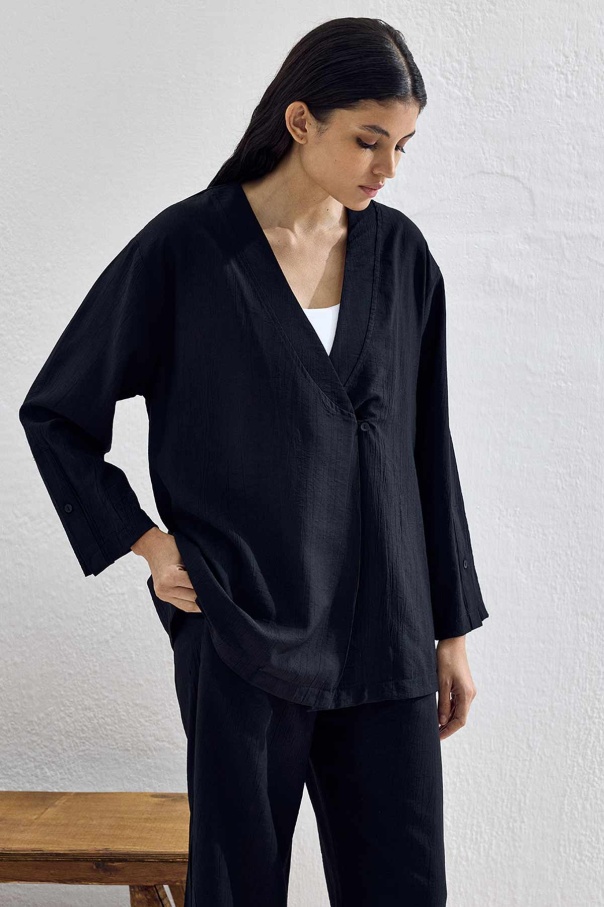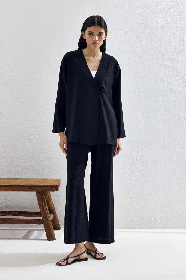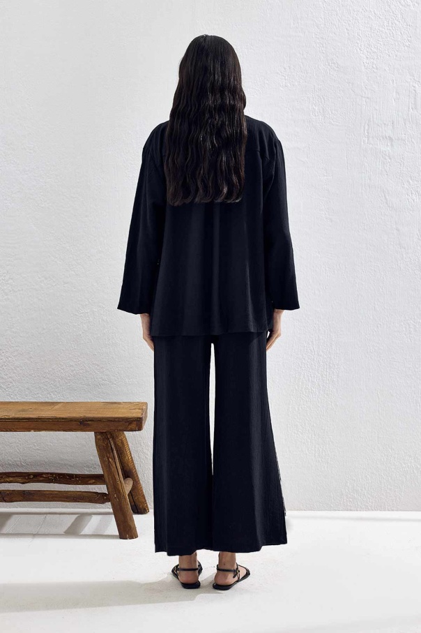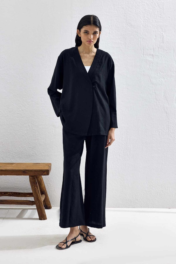 Düğmeli Premium Kimono Siyah Pantolon Takım