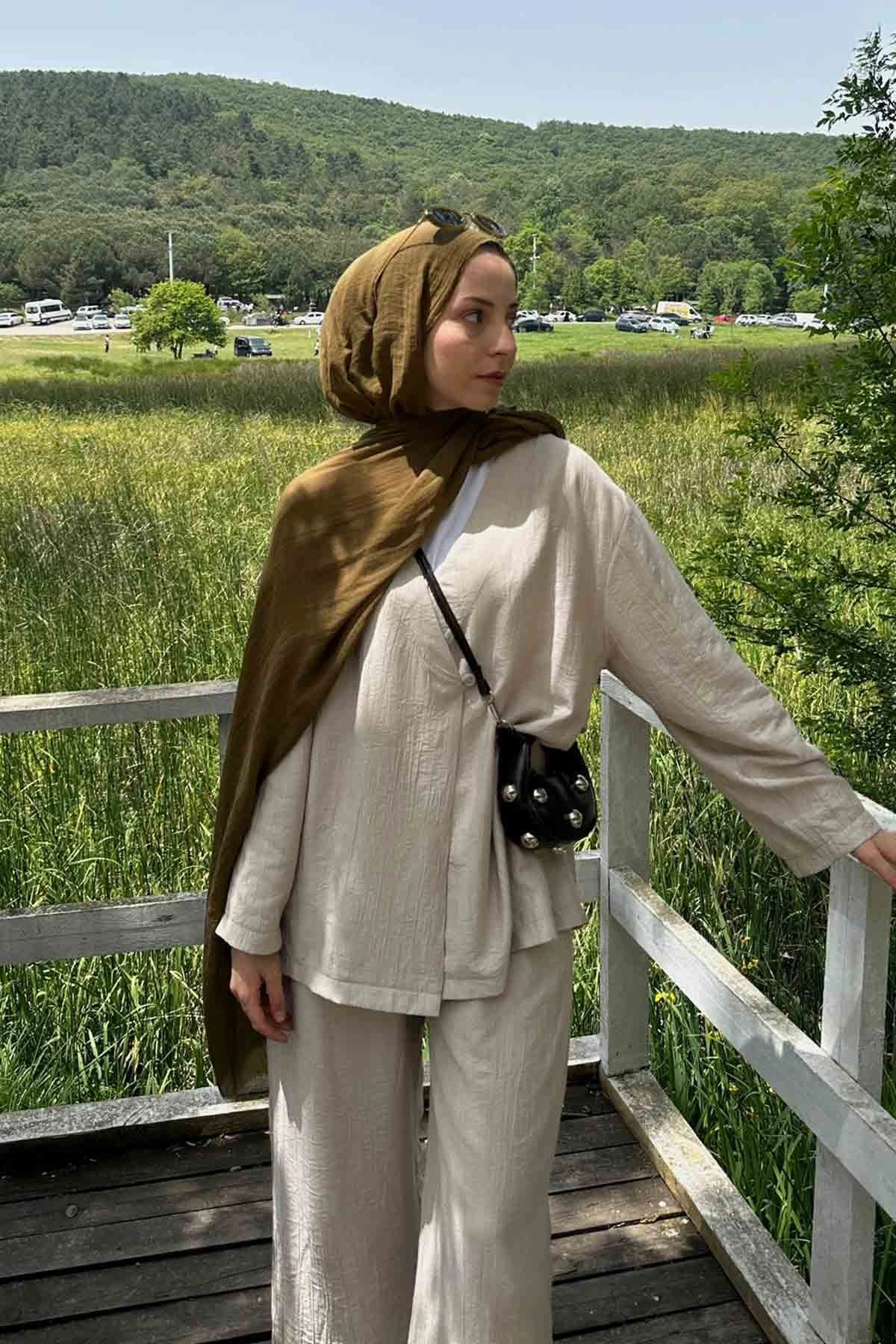 Düğmeli Premium Kimono Taş Pantolon Takım