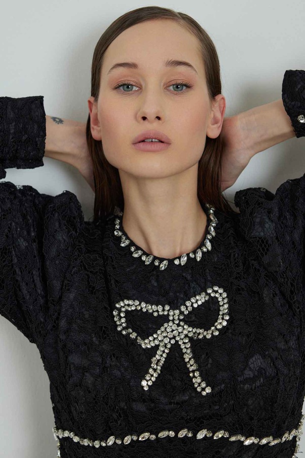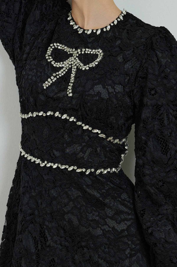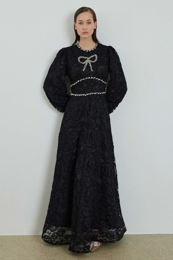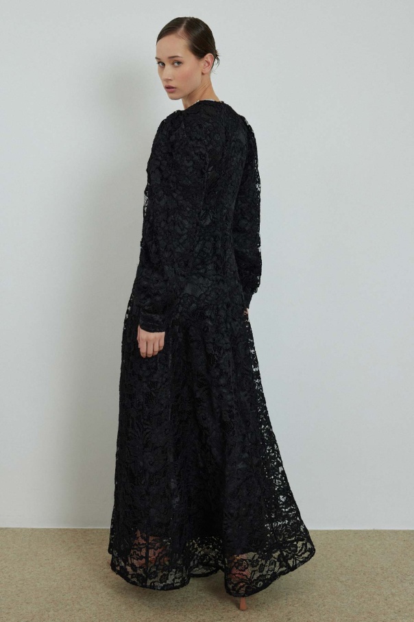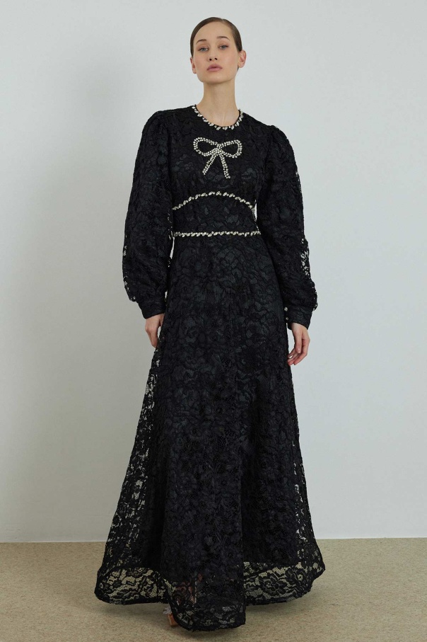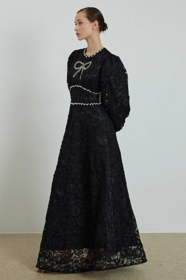 Elisabeth Taş İşlemeli Dantel Siyah Elbise