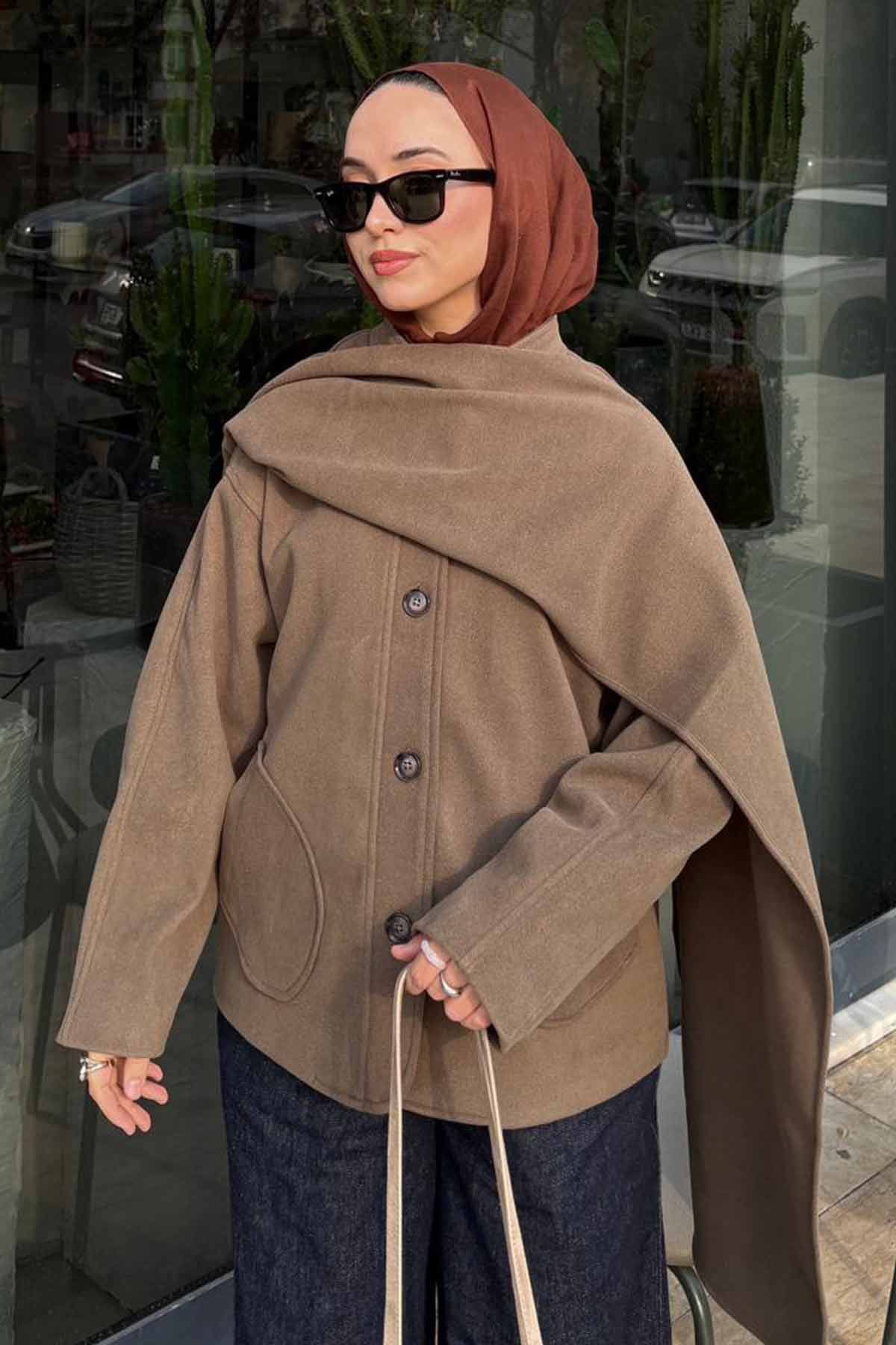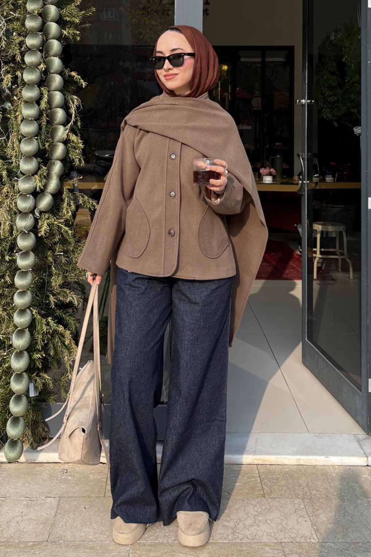 Kaşmir Görünümlü Atkılı Vizon Kaban