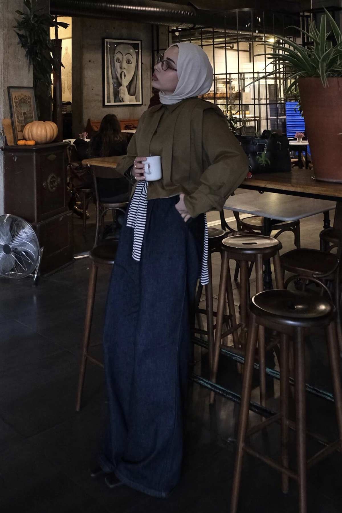 Denim Bol Kesim Yüksek Bel Lacivert Pantolon