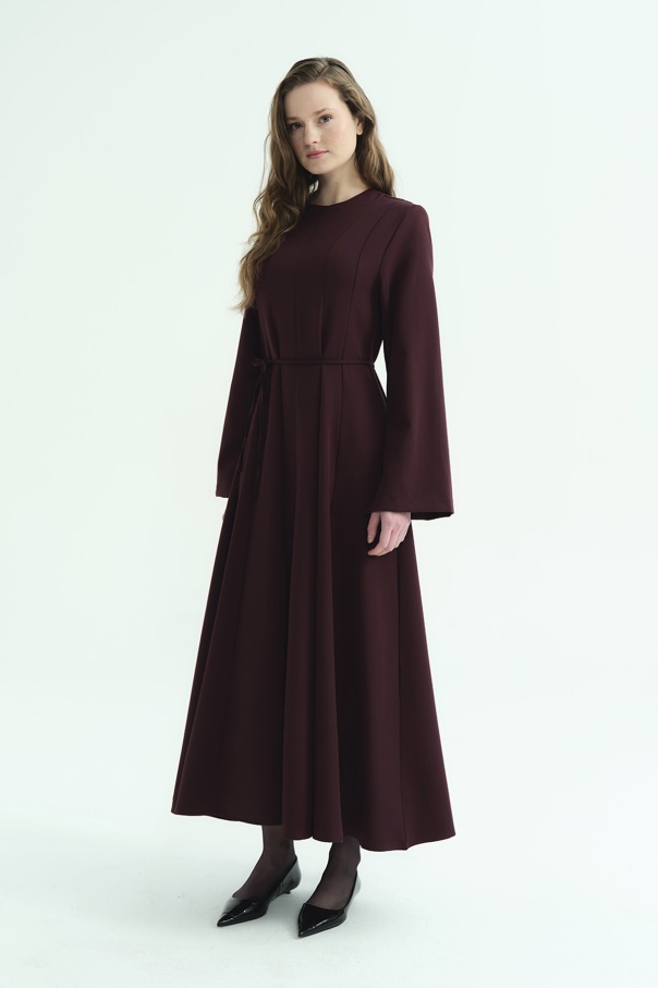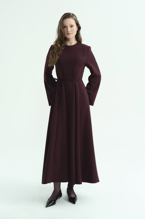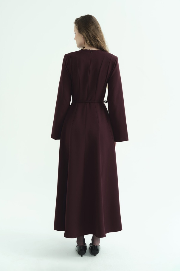 Evaze Kesim Belden Oturma Detaylı Burganya Elbise