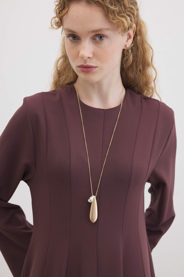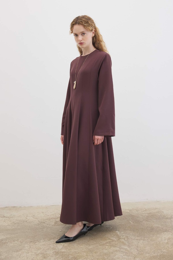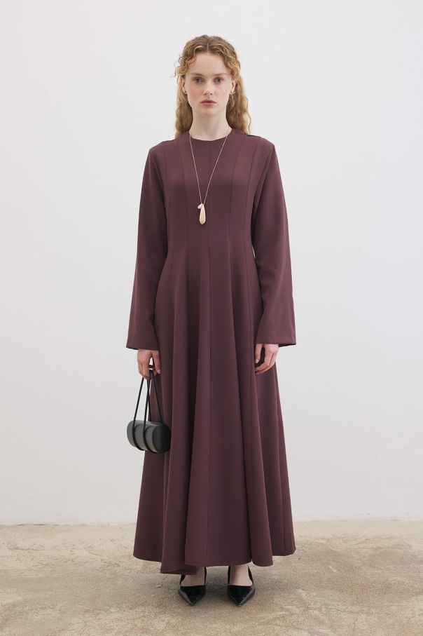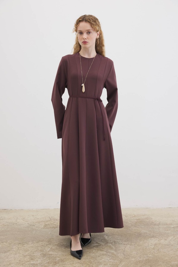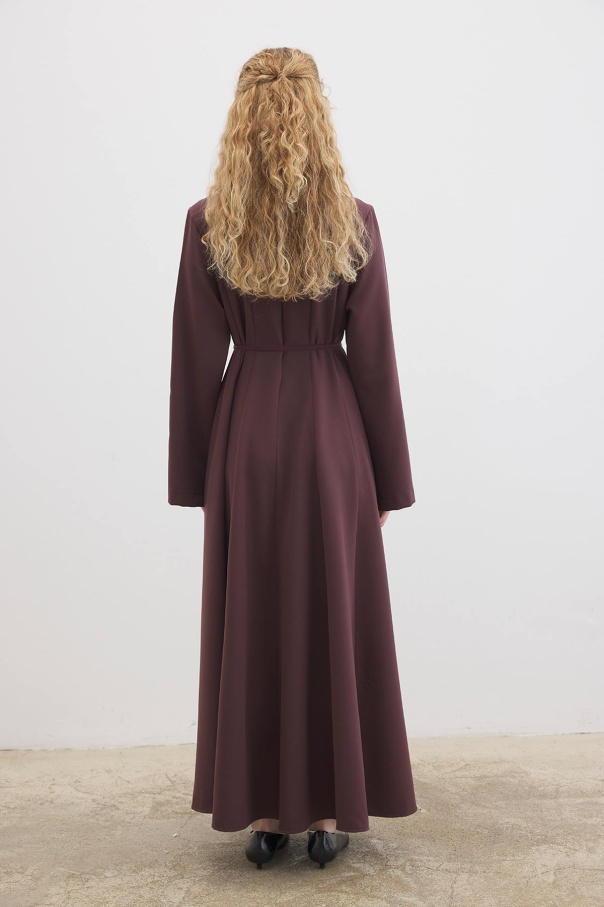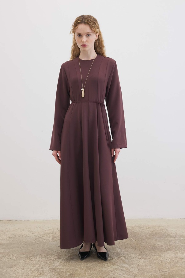 Evaze Kesim Belden Oturma Detaylı Çikolata Elbise