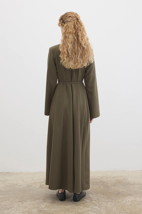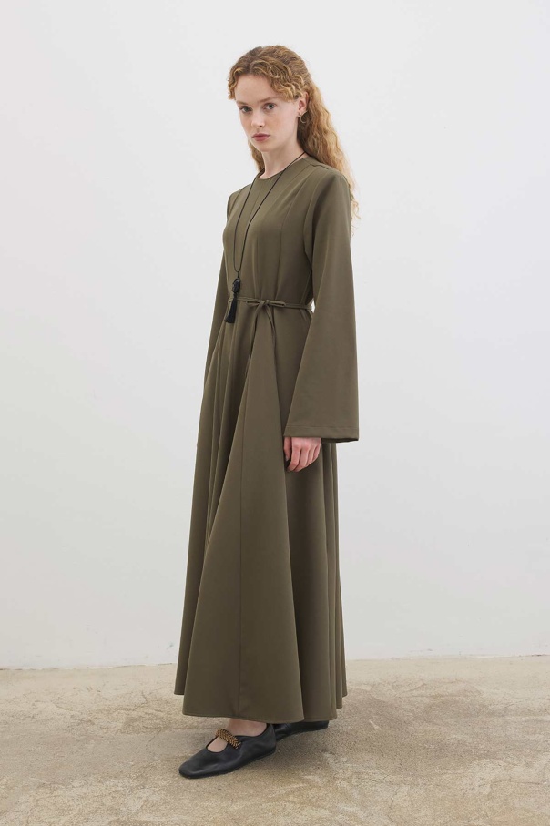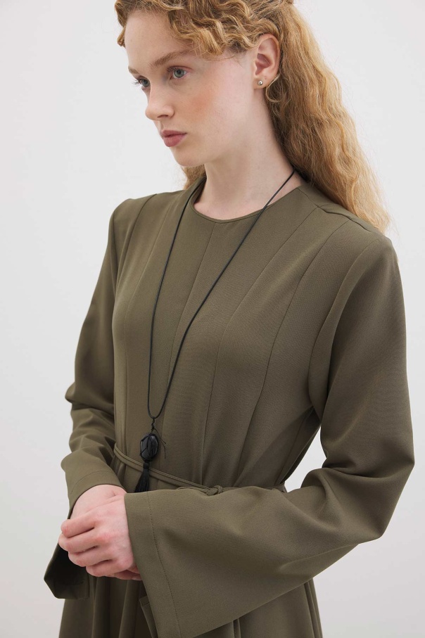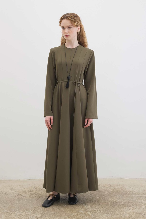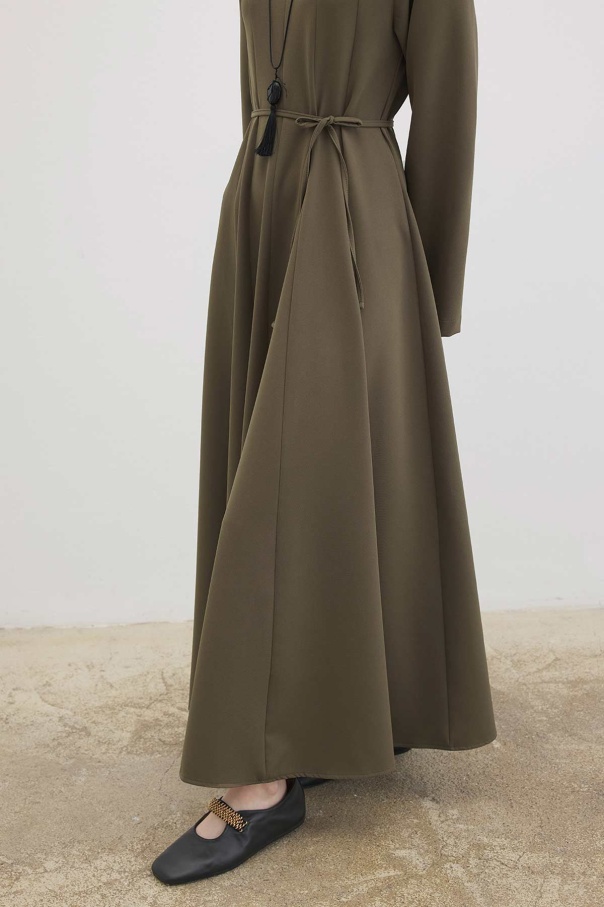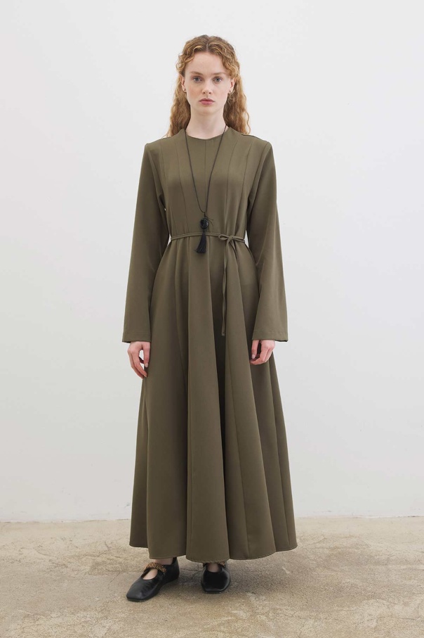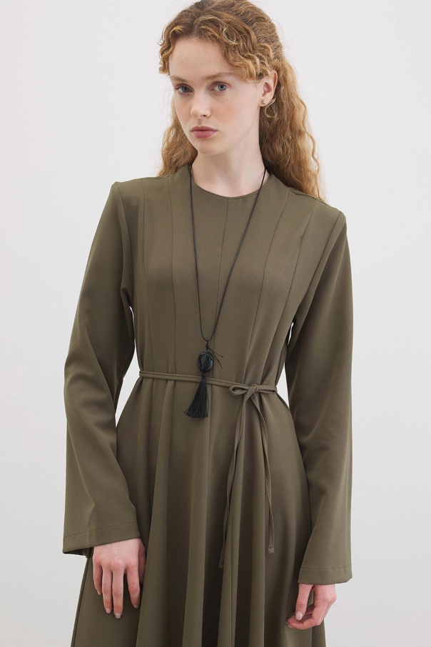 Evaze Kesim Belden Oturma Detaylı Haki Elbise