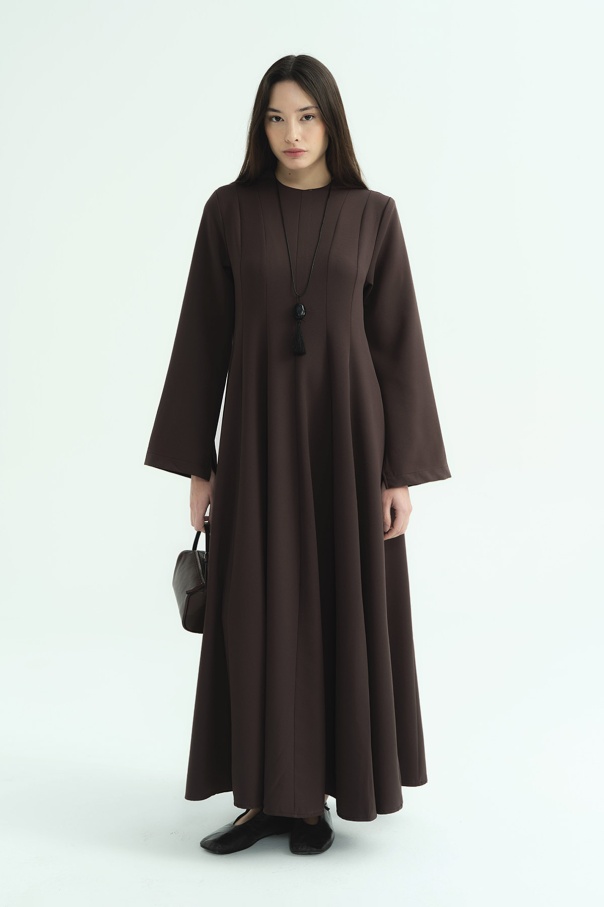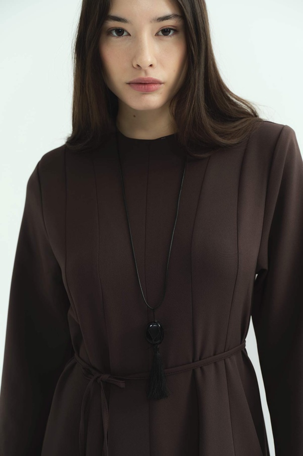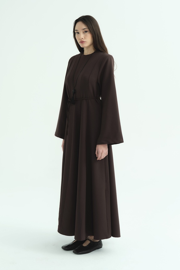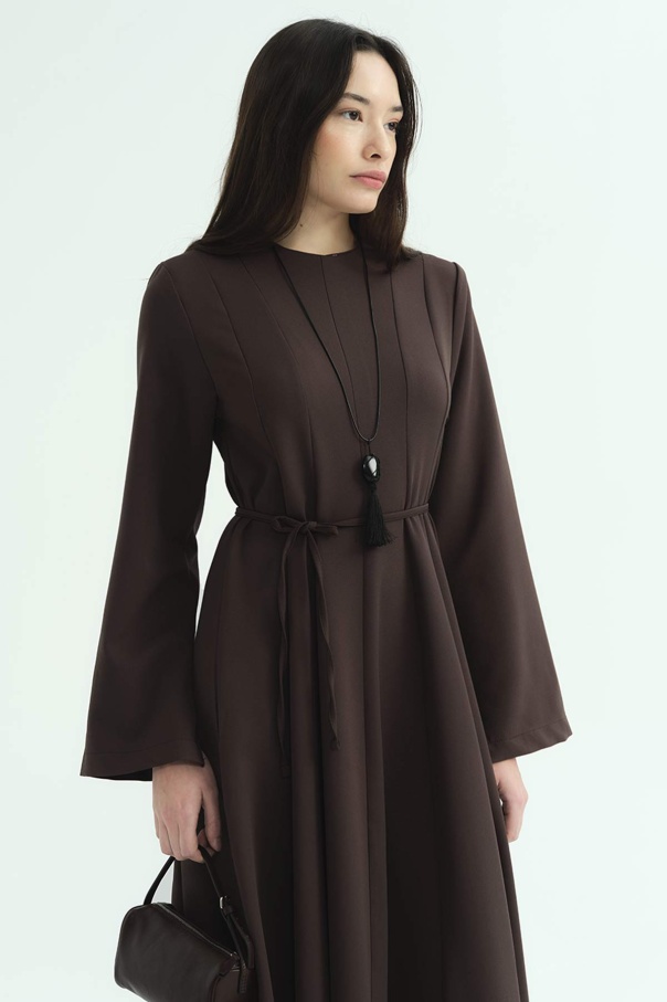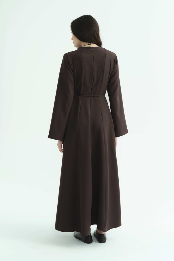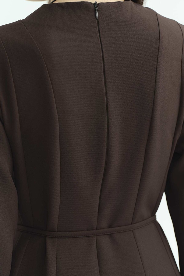 Evaze Kesim Belden Oturma Detaylı Kahve Elbise