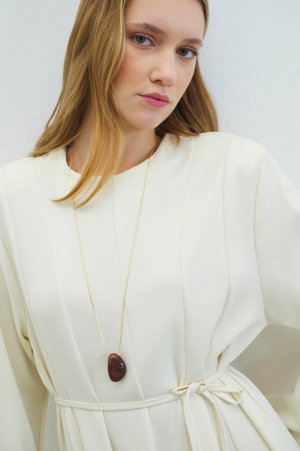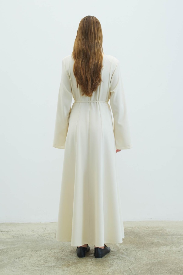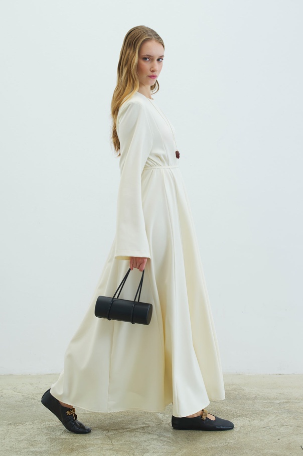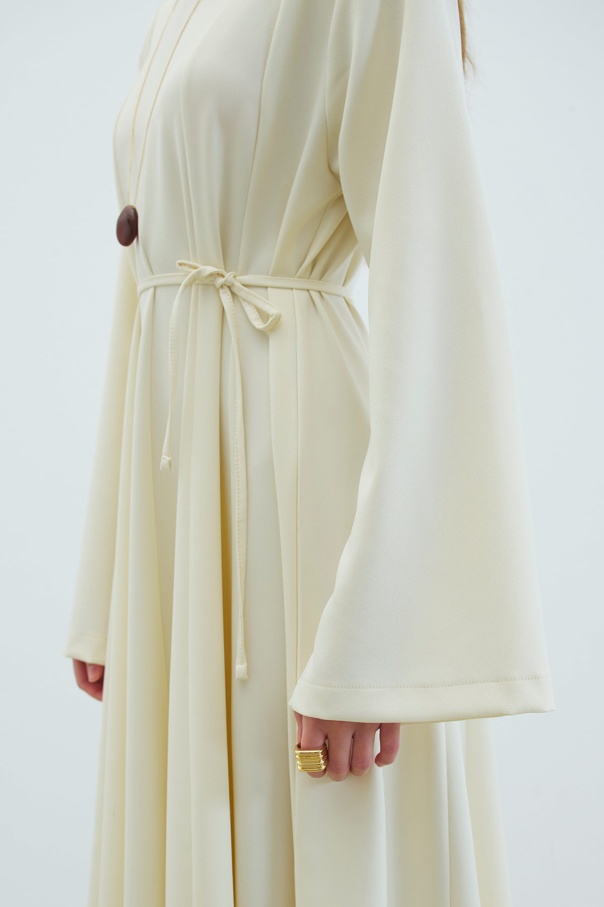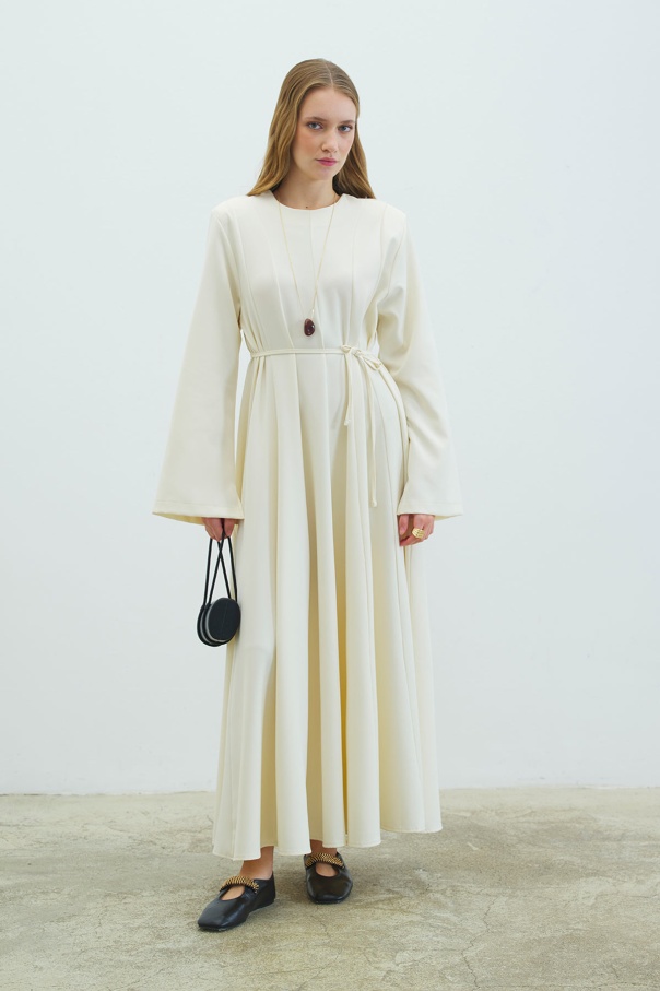 Evaze Kesim Belden Oturma Detaylı Krem Elbise