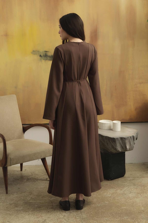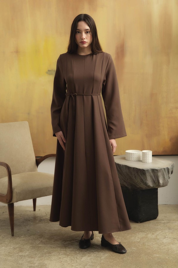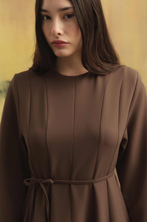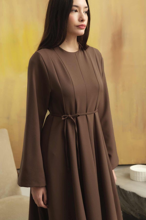 Evaze Kesim Belden Oturma Detaylı Vizon Elbise