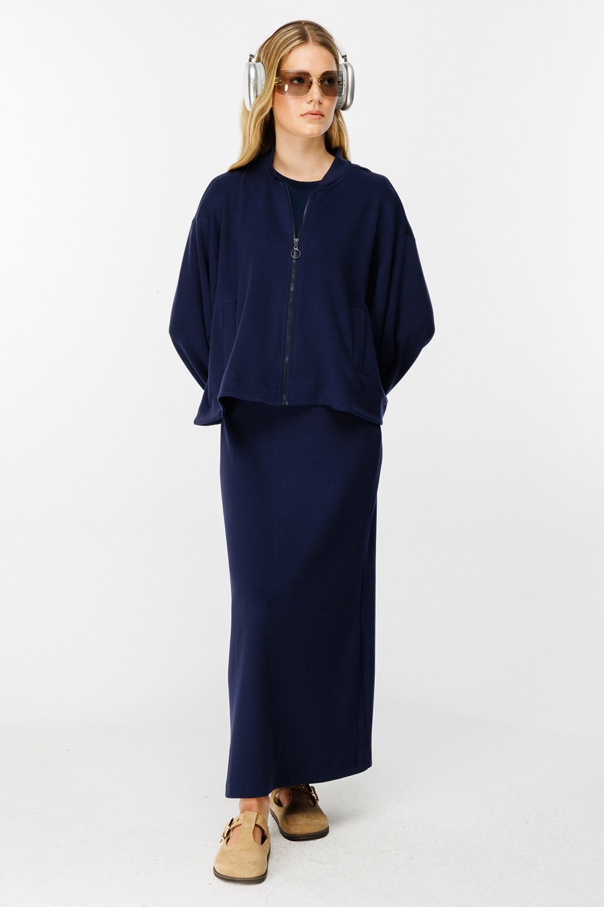 Fermuar Detaylı Bomber Lacivert Ceket