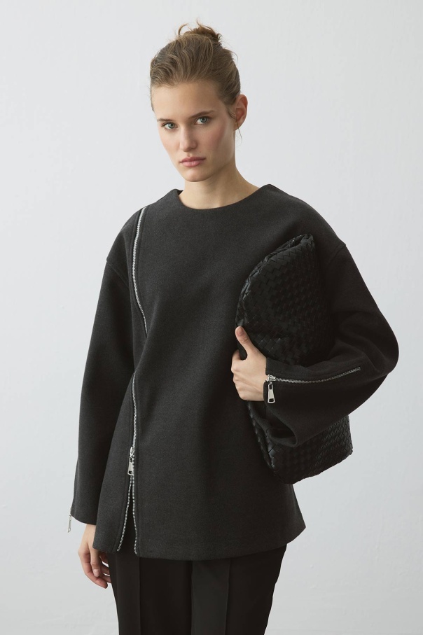Fermuar Detaylı Kaşe Antrasit Sweatshirt