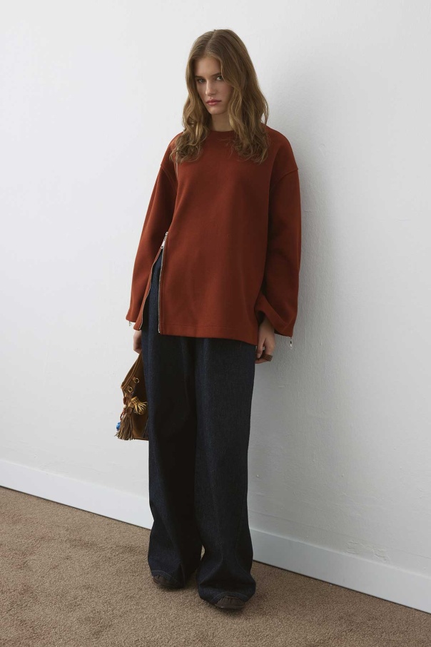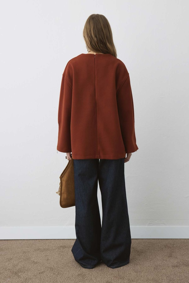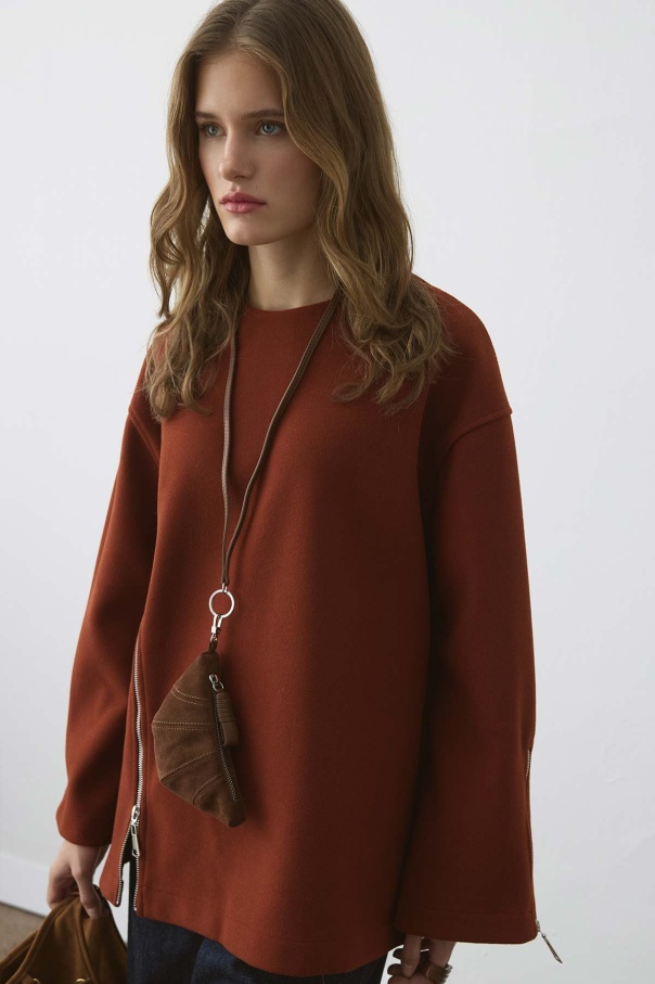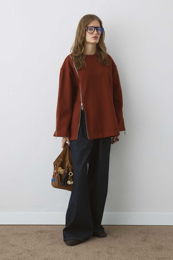 Fermuar Detaylı Kaşe Kiremit Sweatshirt