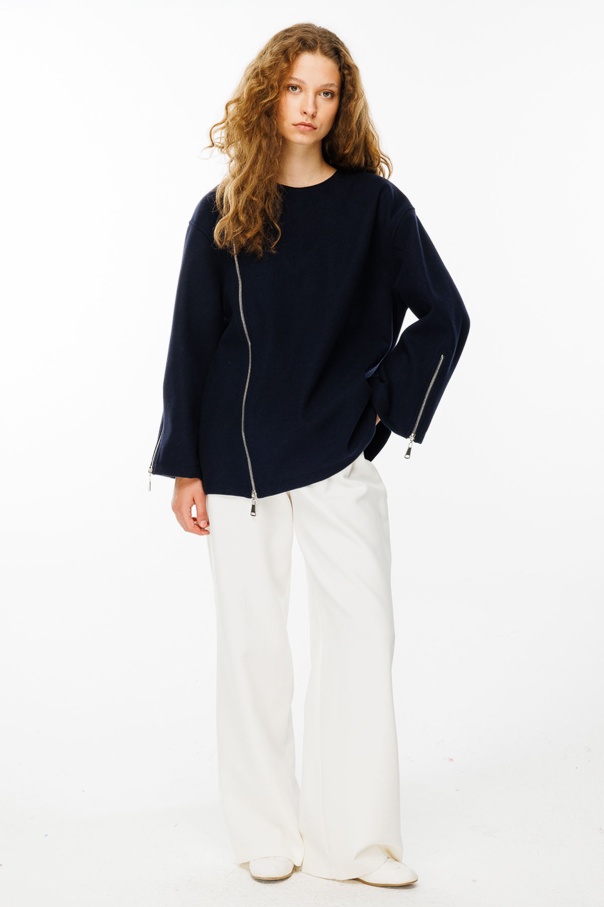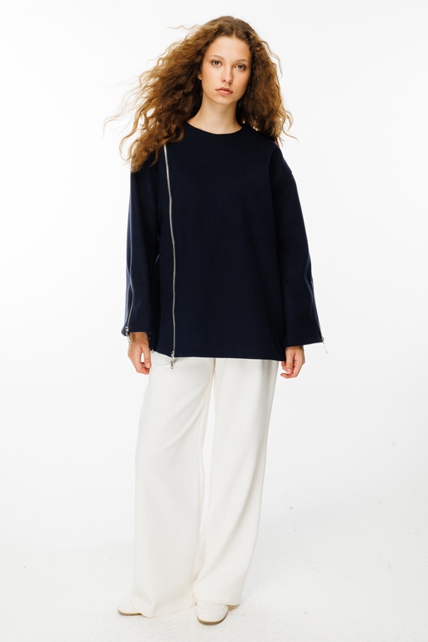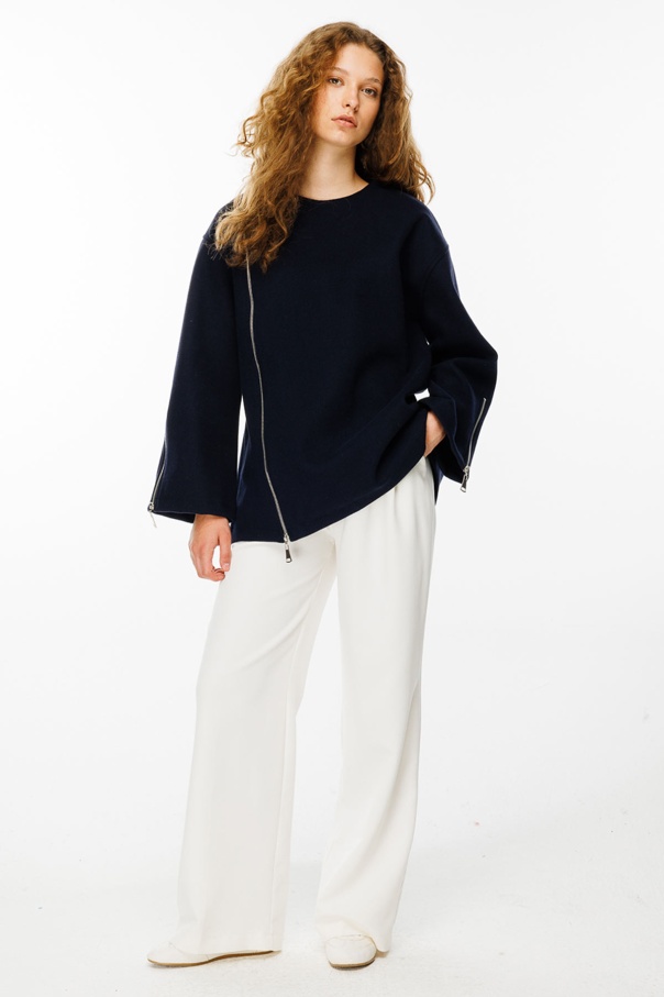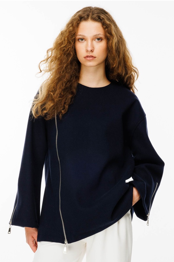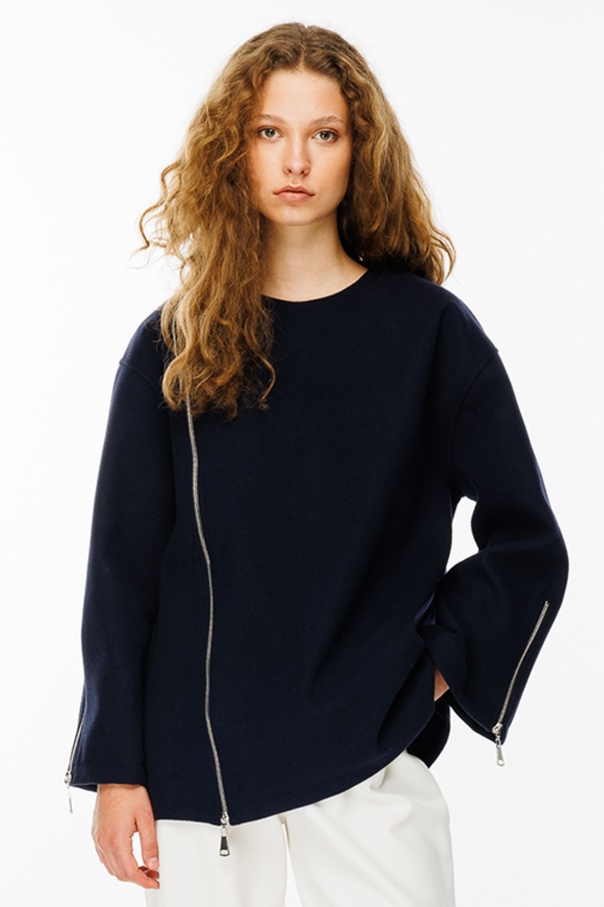 Fermuar Detaylı Kaşe Lacivert Sweatshirt