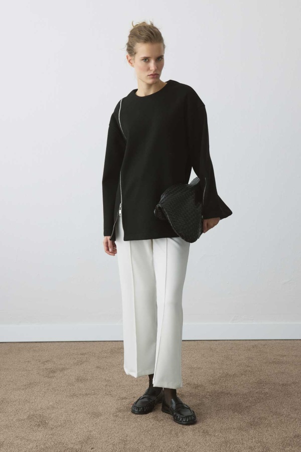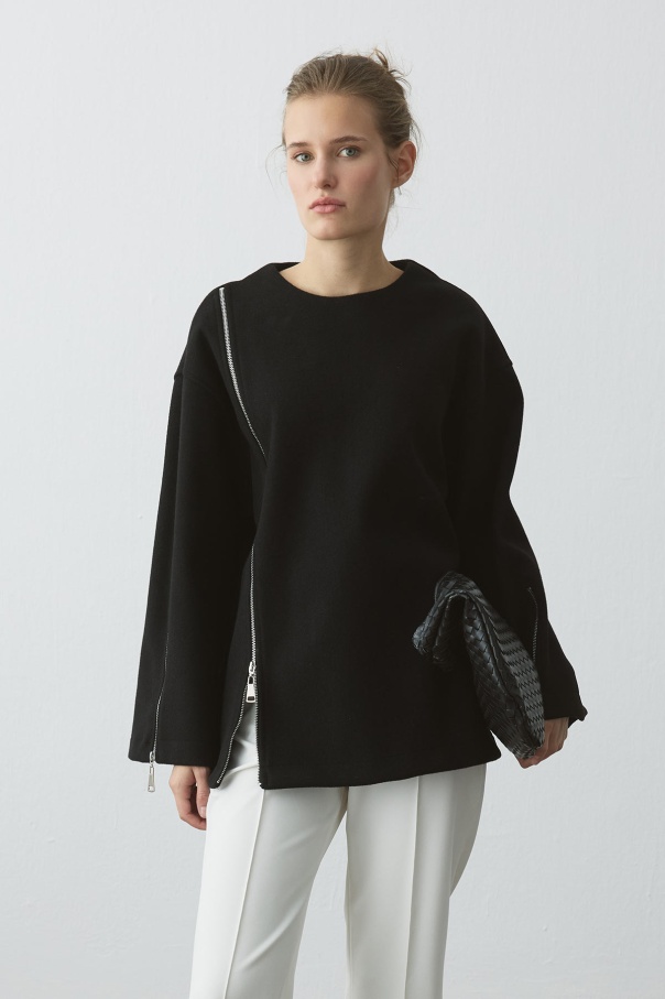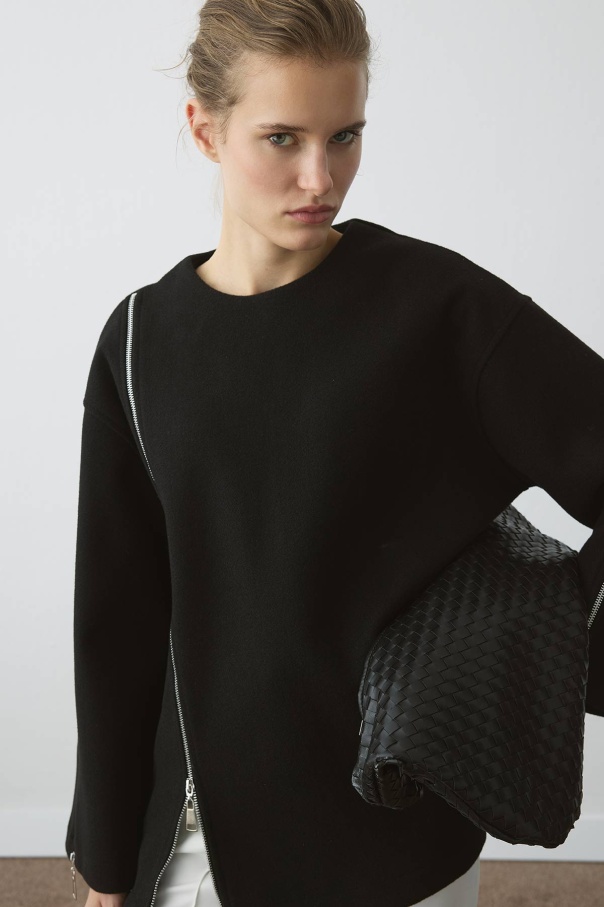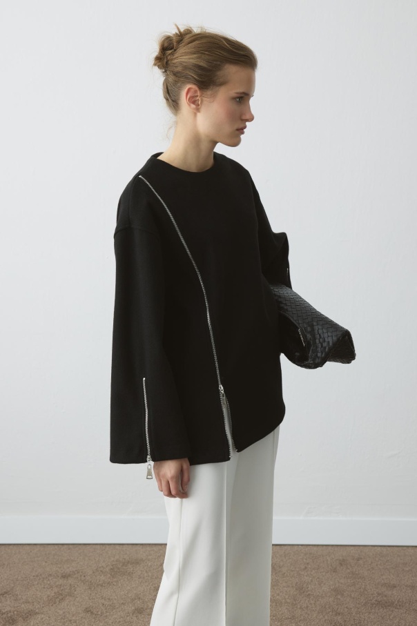 Fermuar Detaylı Kaşe Siyah Sweatshirt