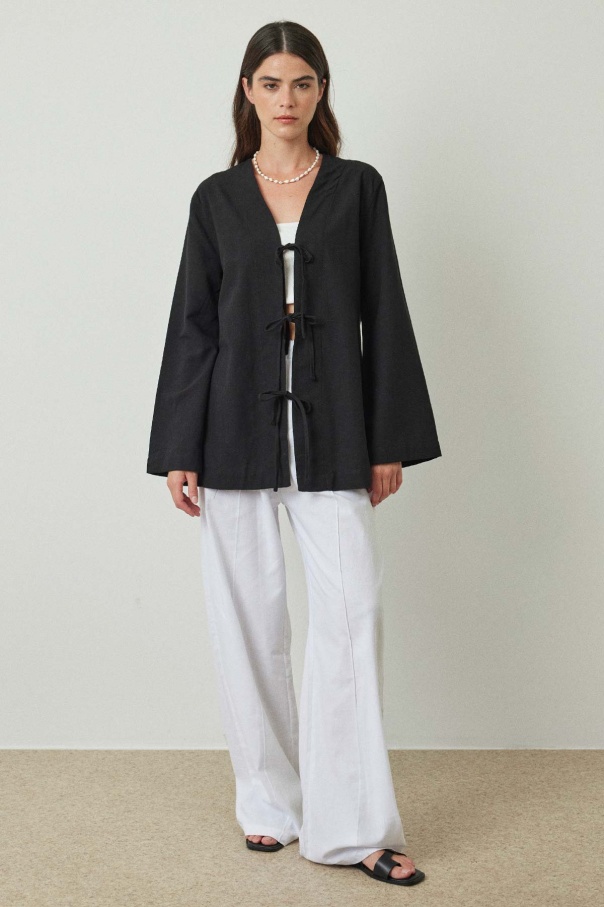 Fiyonk Bağlama Siyah Gömlek