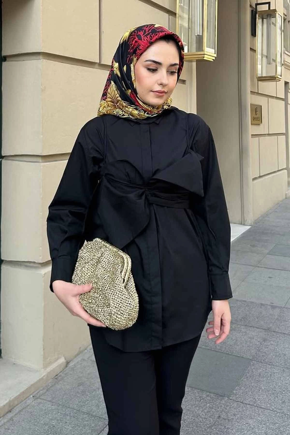 Fiyonk Detaylı Siyah Gömlek
