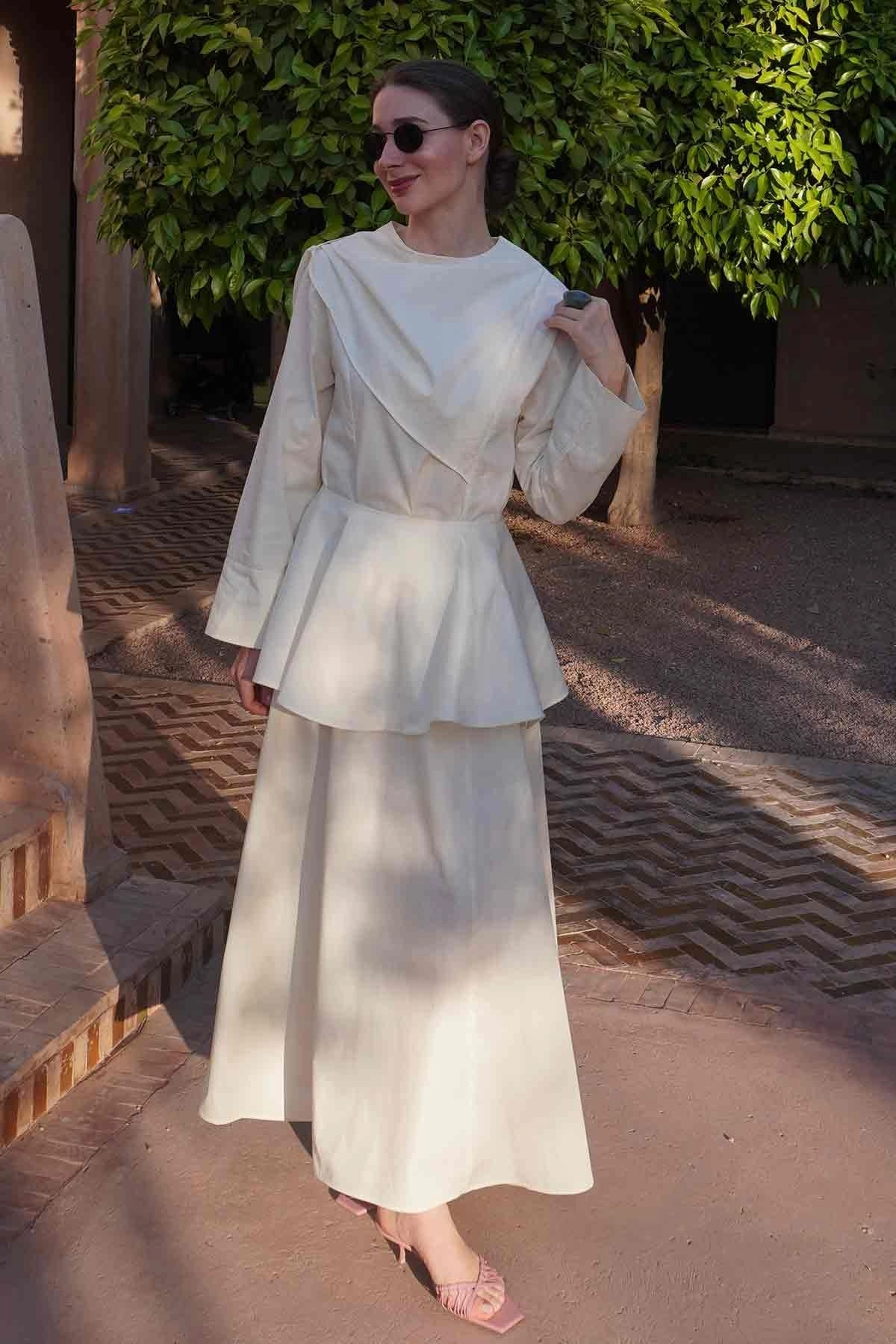 Flow Pelerin Detaylı Poplin Krem Elbise