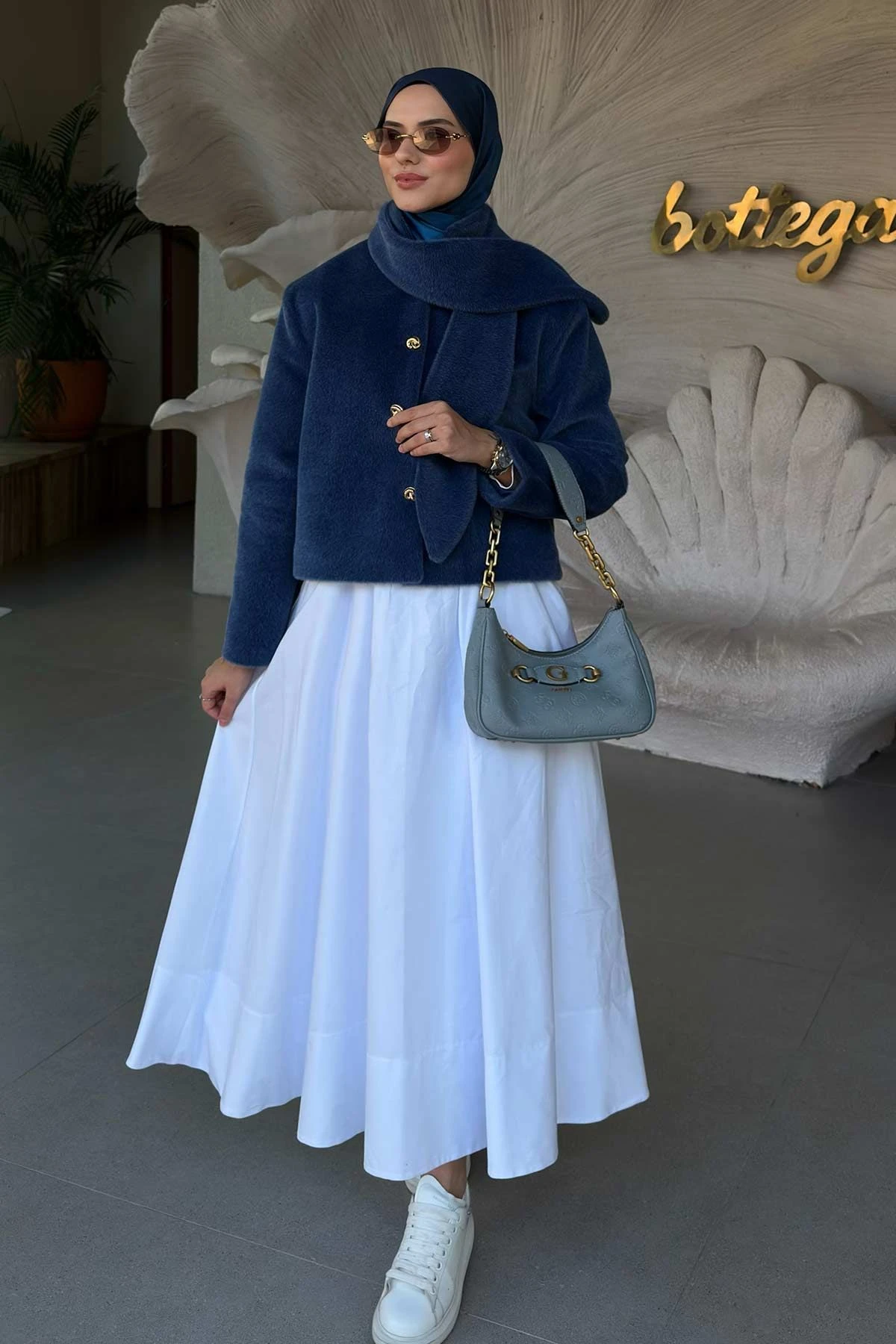Fular Bağlama Detaylı Kısa İndigo Ceket