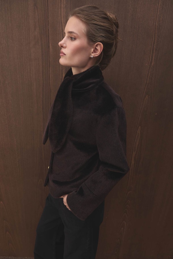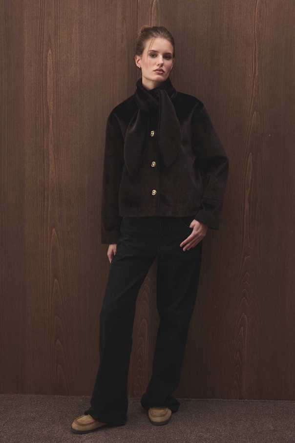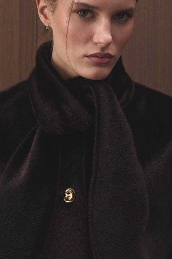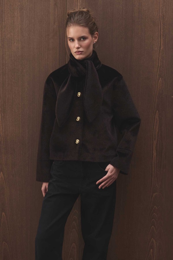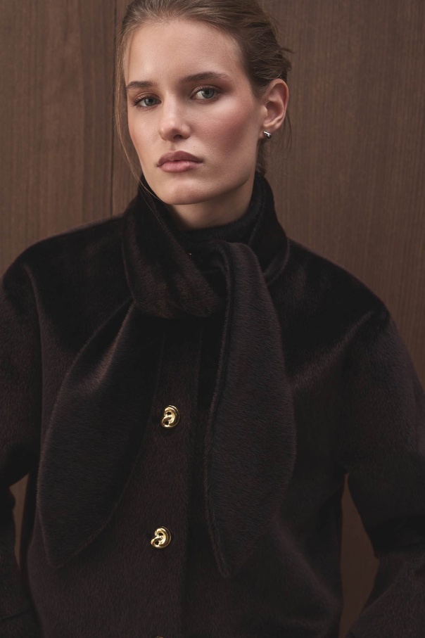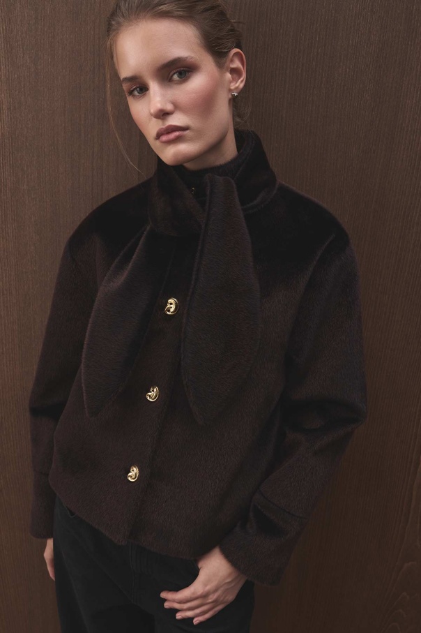 Fular Bağlama Detaylı Kısa Kahve Ceket