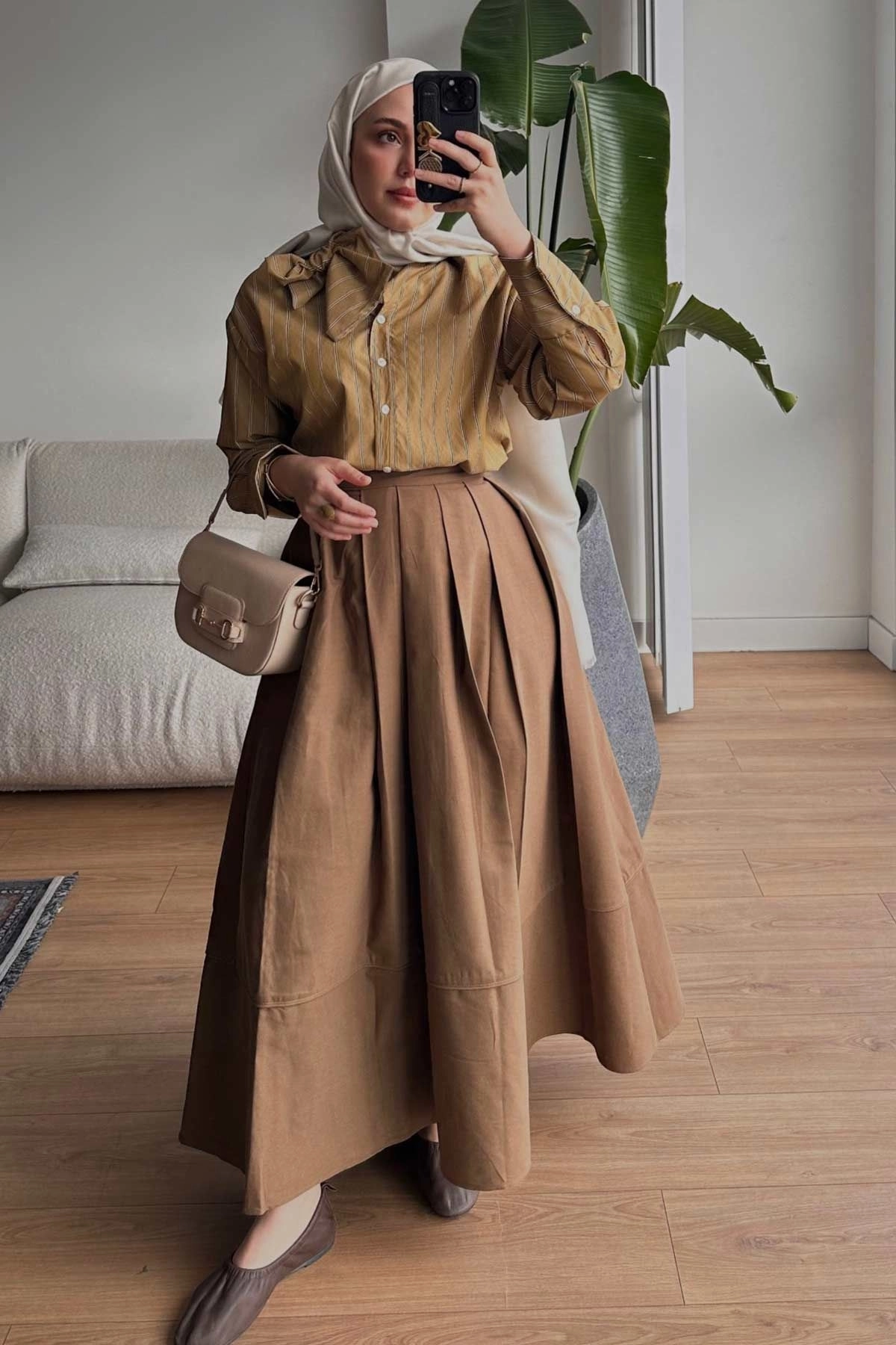 Fular Yaka Gömlek - Camel
