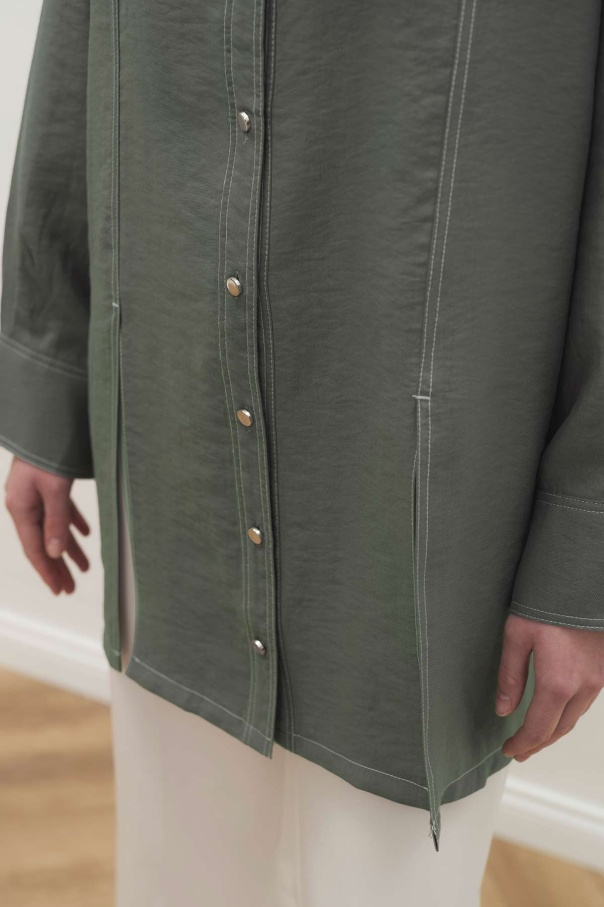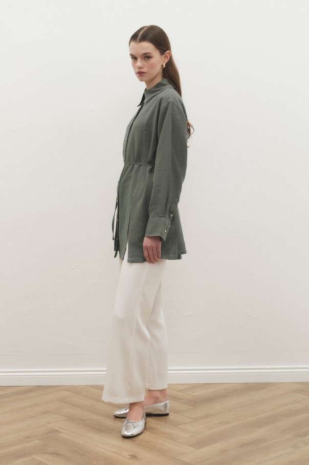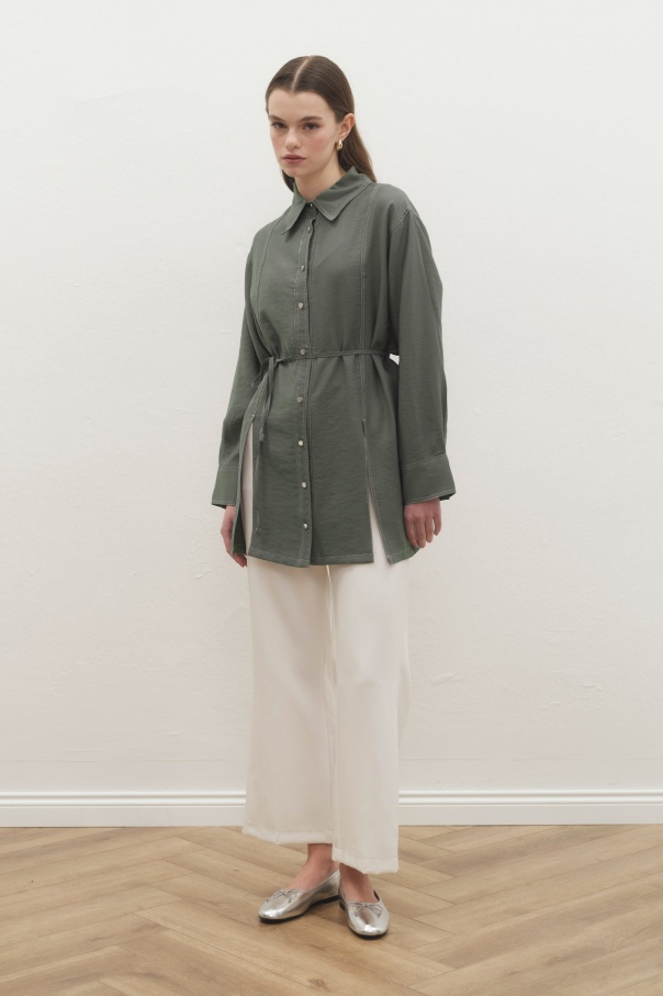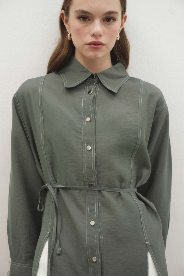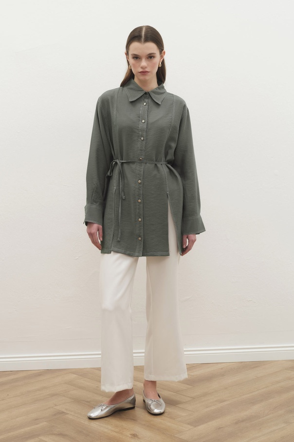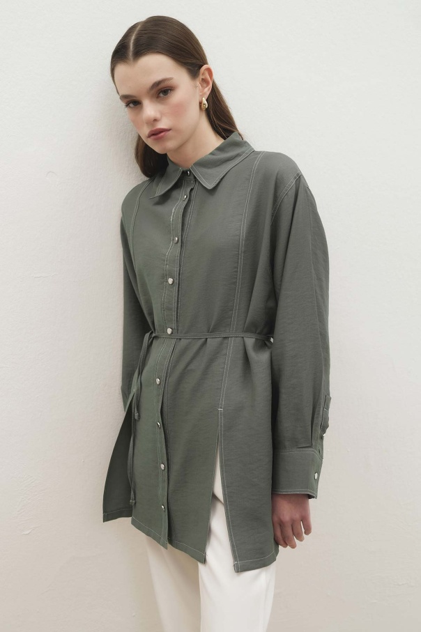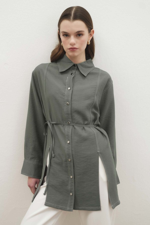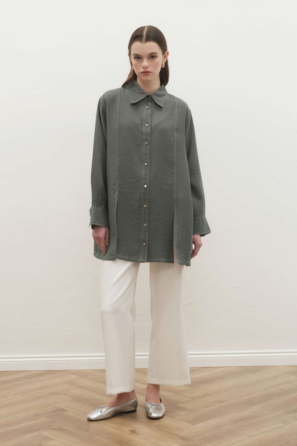 Gardenya Çift Dikiş Detaylı Gri Gömlek