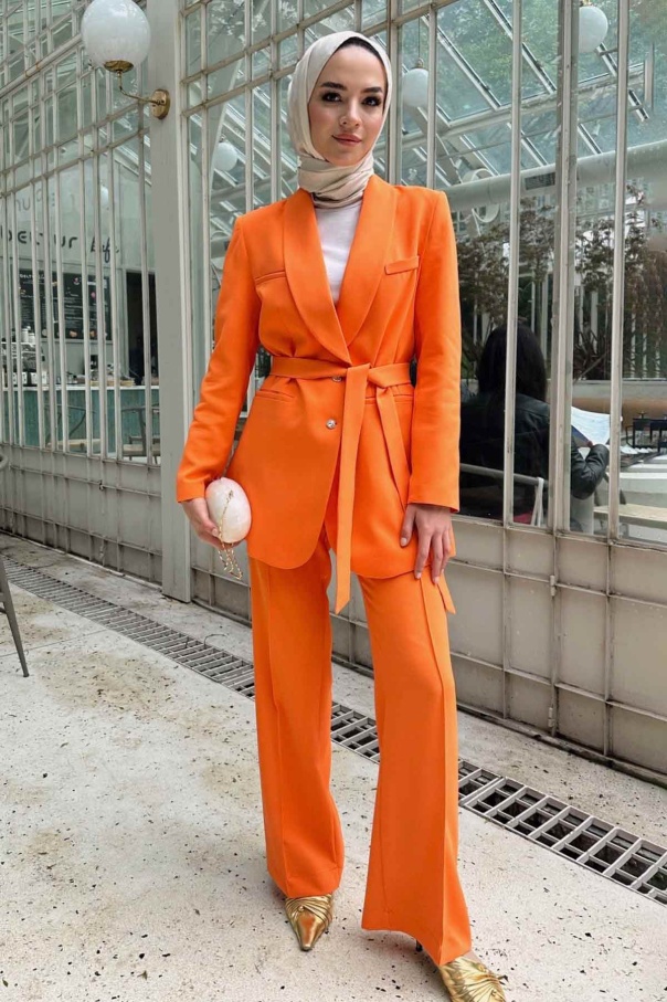 Geniş Paça Yüksek Bel Oranj Pantolon