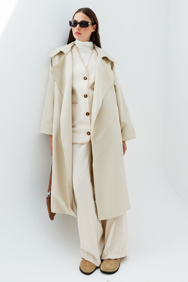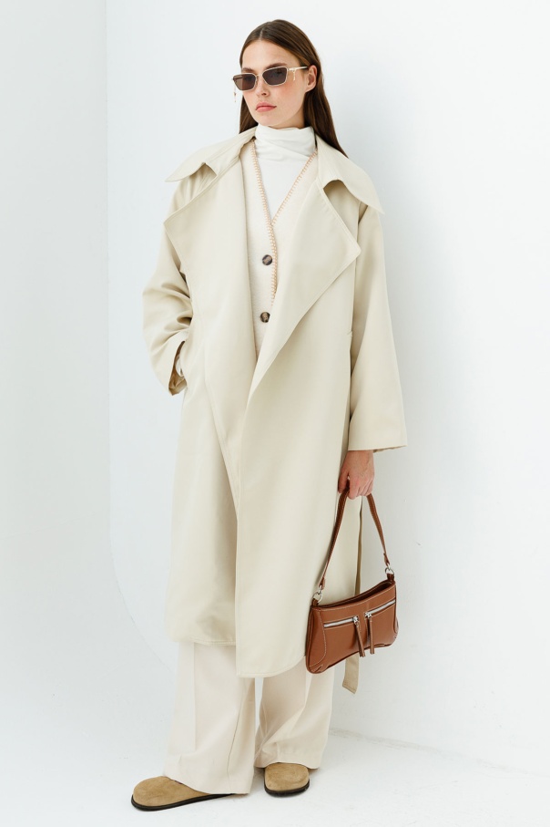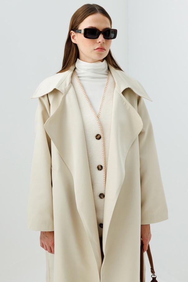 Geniş Yaka Bej Trençkot