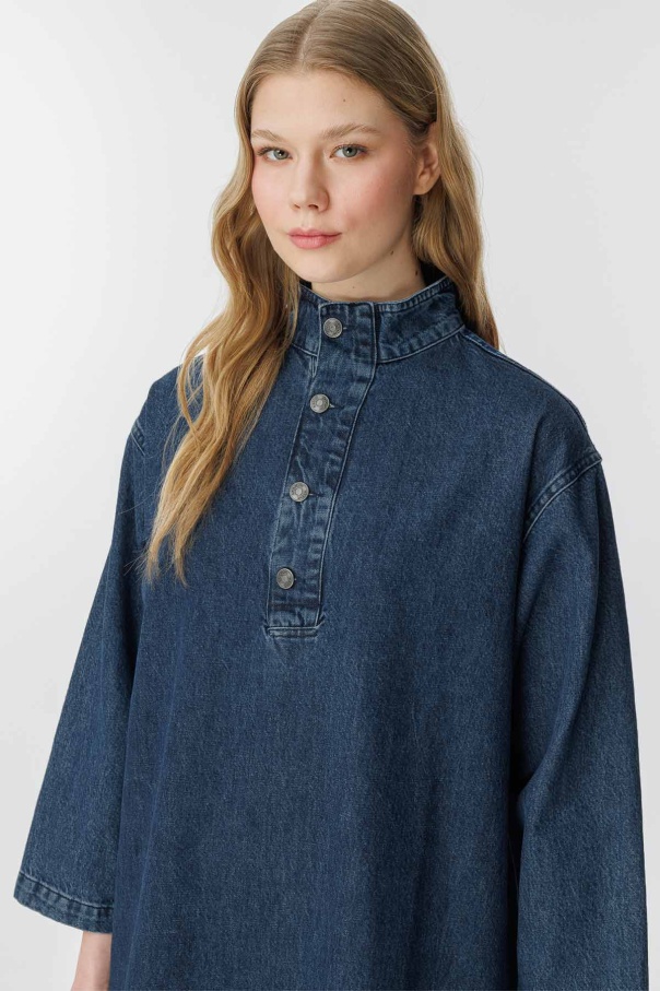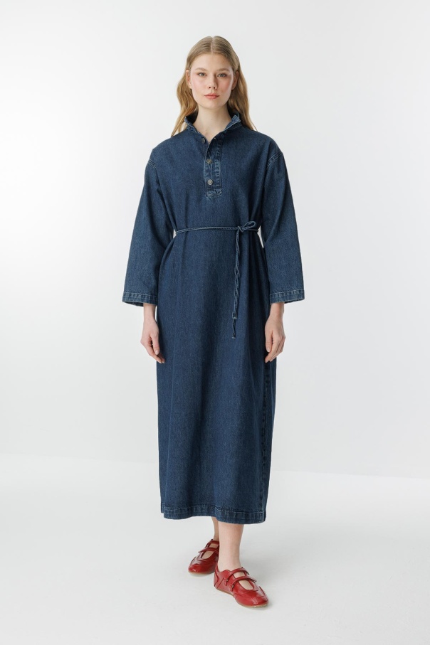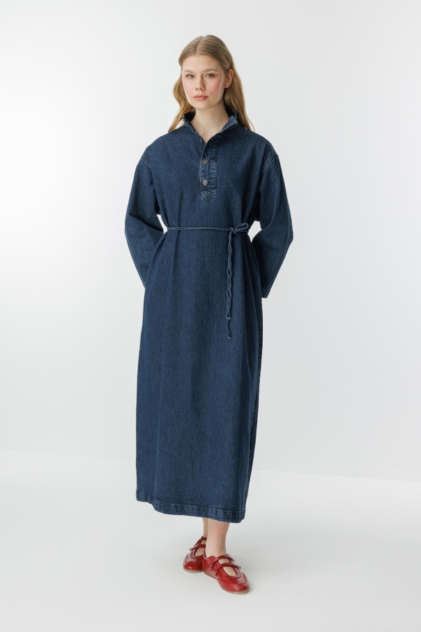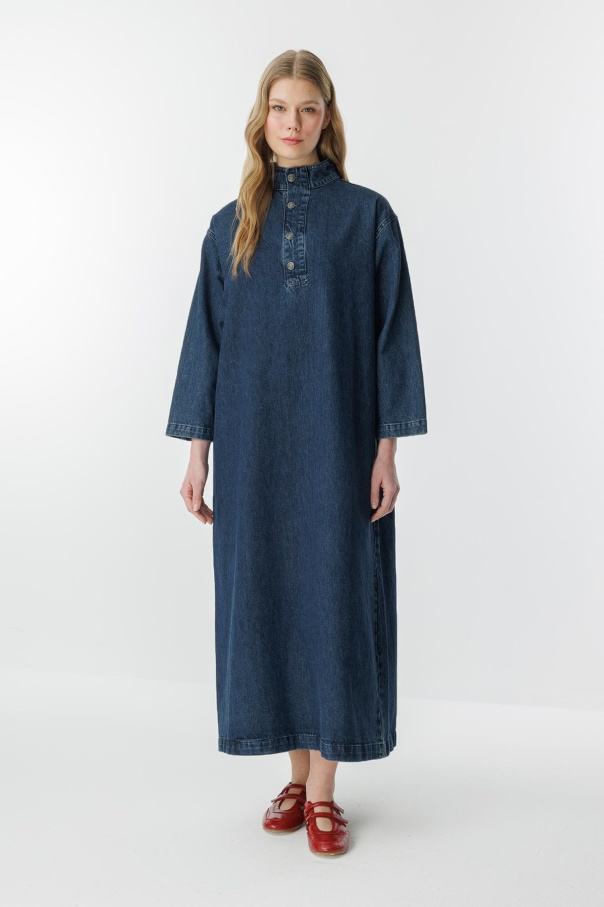 Gina Yaka Detaylı Lacivert Denim Elbise